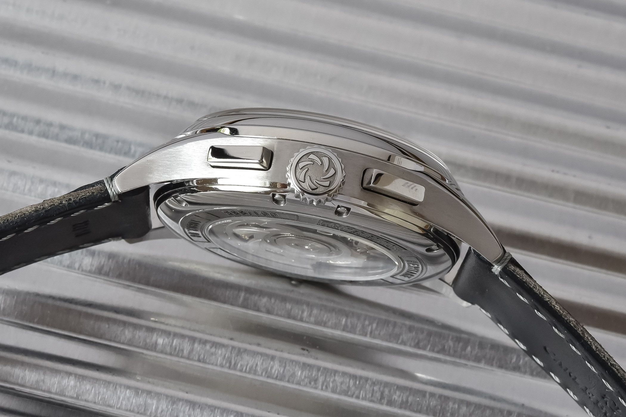 The latest stainless steel Heritage BiCompax Annual (a.k.a. the Orca) retains the 41mm case size of the 2019 launches with an engaging combination of brushed and polished surfaces. The rectangular pushers of the original have been maintained but are now finished with rounded, polished surfaces for a more elegant appeal.