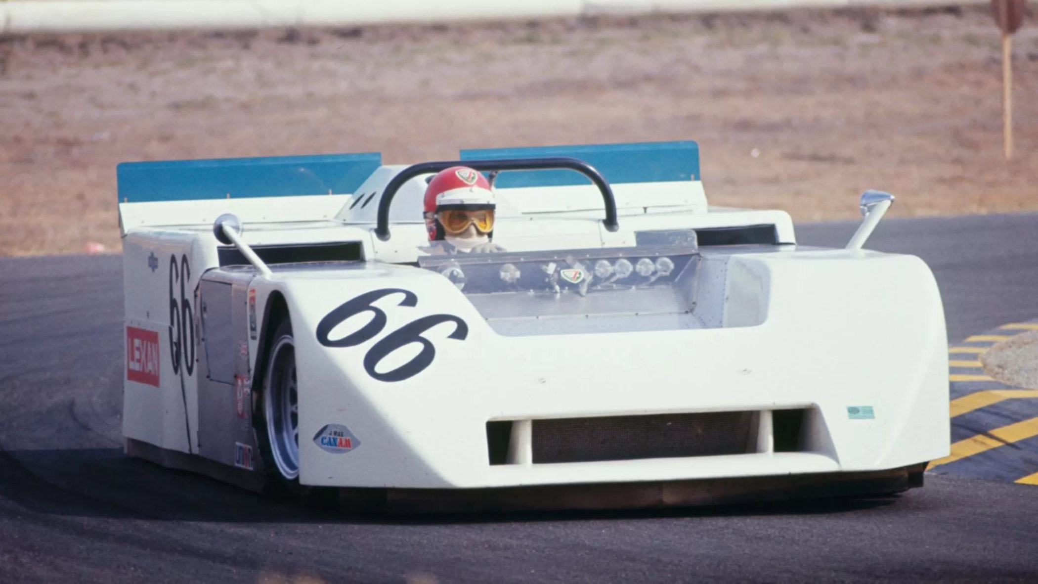 It ran in the bonkers Canadian-American Challenge Cup Series (or CanAm in short) in 1970, was initially plagued by reliability issues but proved mightily fast when it worked. It was outlawed as rival teams feared it would dominate the championship and force other teams out of competing. It can be seen here in a montage of the 1970 CanAm race at Road Atlanta, alongside other beasts from McLaren, Porsche, Lola and Ferrari.