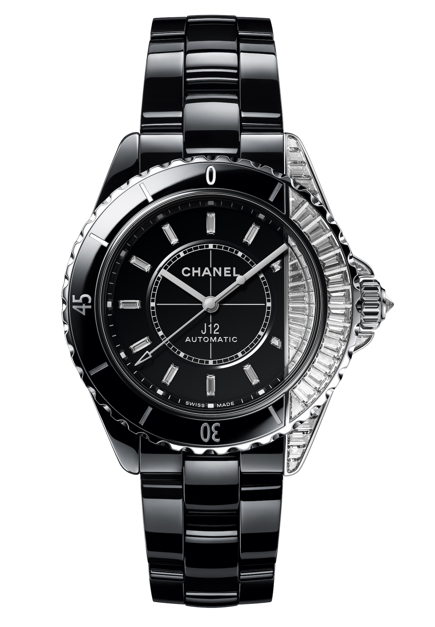 Jacques Hellu, the artistic director at Chanel for many years, wanted to design a watch for himself. He wanted something timeless, glossy, black and indestructible that would still reflect the chic and luxurious aura of the brand. Launched in 2000, Hellu’s watch was named after the J12, a class of racing yachts participating in the America’s Cup renowned for their sleek profile and speed. With 200m water-resistance, a sporty notched dive bezel and a sleek high-tech black ceramic bracelet and case, the J12 sailed straight into the limelight. The J12 was a winning blend of feminine and masculine elements, a gender-bender of sorts. This is hardly surprising when you take into account Gabrielle Chanel’s penchant for mixing comfortable, relaxed garments from men’s wardrobes (jerseys, baggy trousers) with feminine touches.