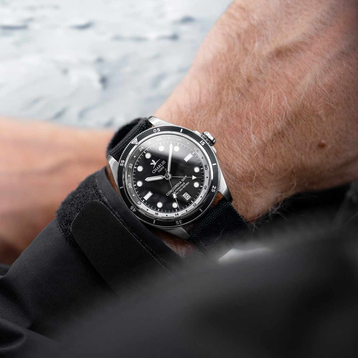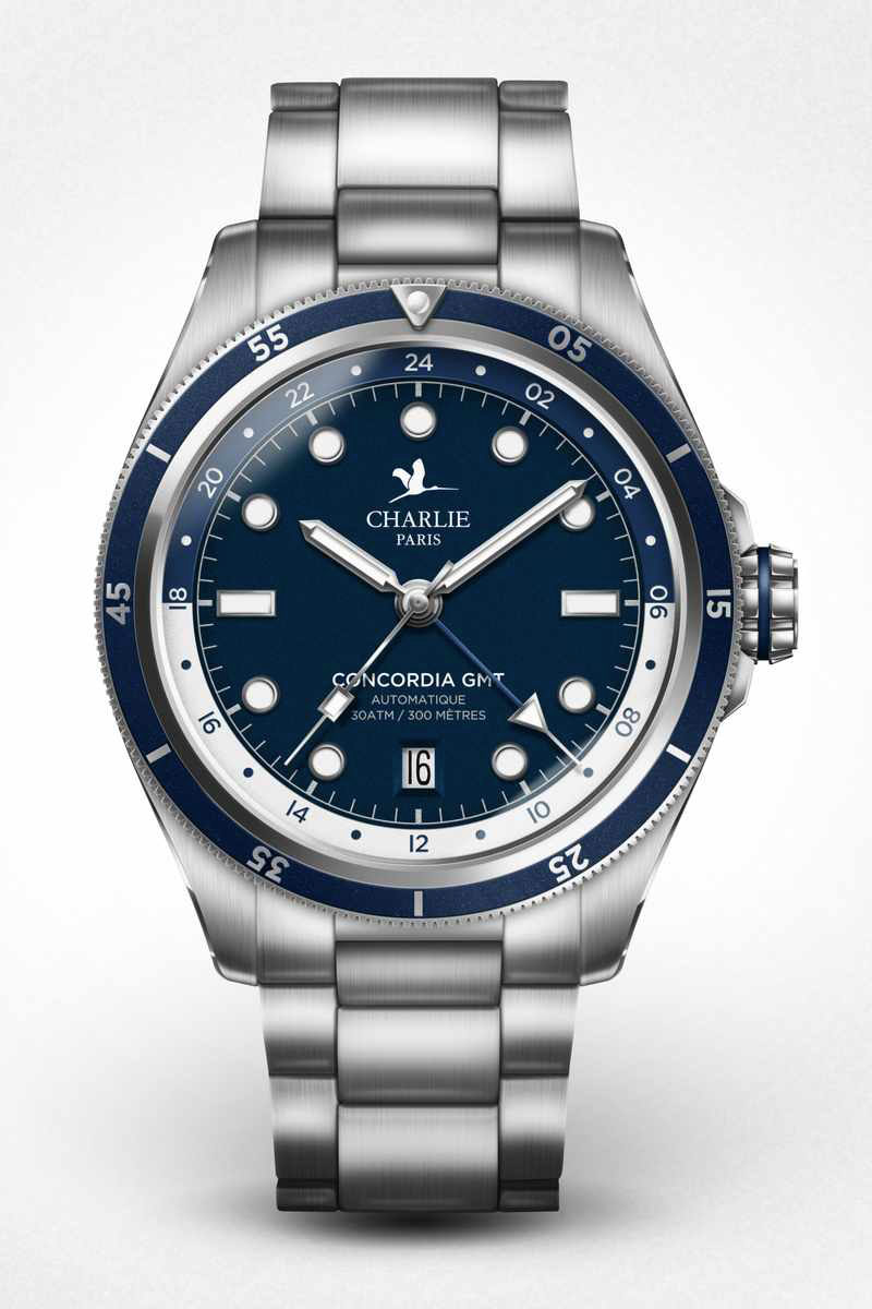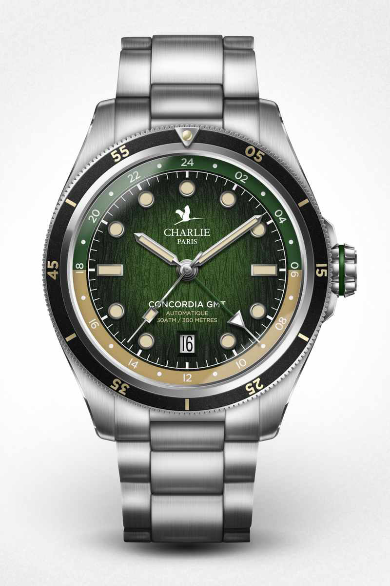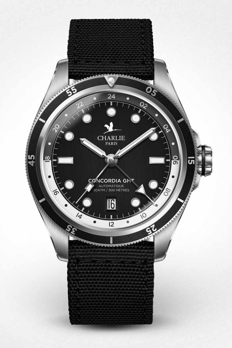 A relatively young brand based in France (founded in 2014), Charlie Paris now offers a wide range of accessible watches, from elegant models to sports watches. Among those, the Concordia collection has recently caught our attention. Classically styled, it blends a robust case with diving specs and a reliable Swiss movement for a fair price. Following the blackened Kraken edition we’ve covered here, the collection now expands with a new complication, launched within the Concordia GMT Automatic… and the result is a great go-anywhere, do-anything model!