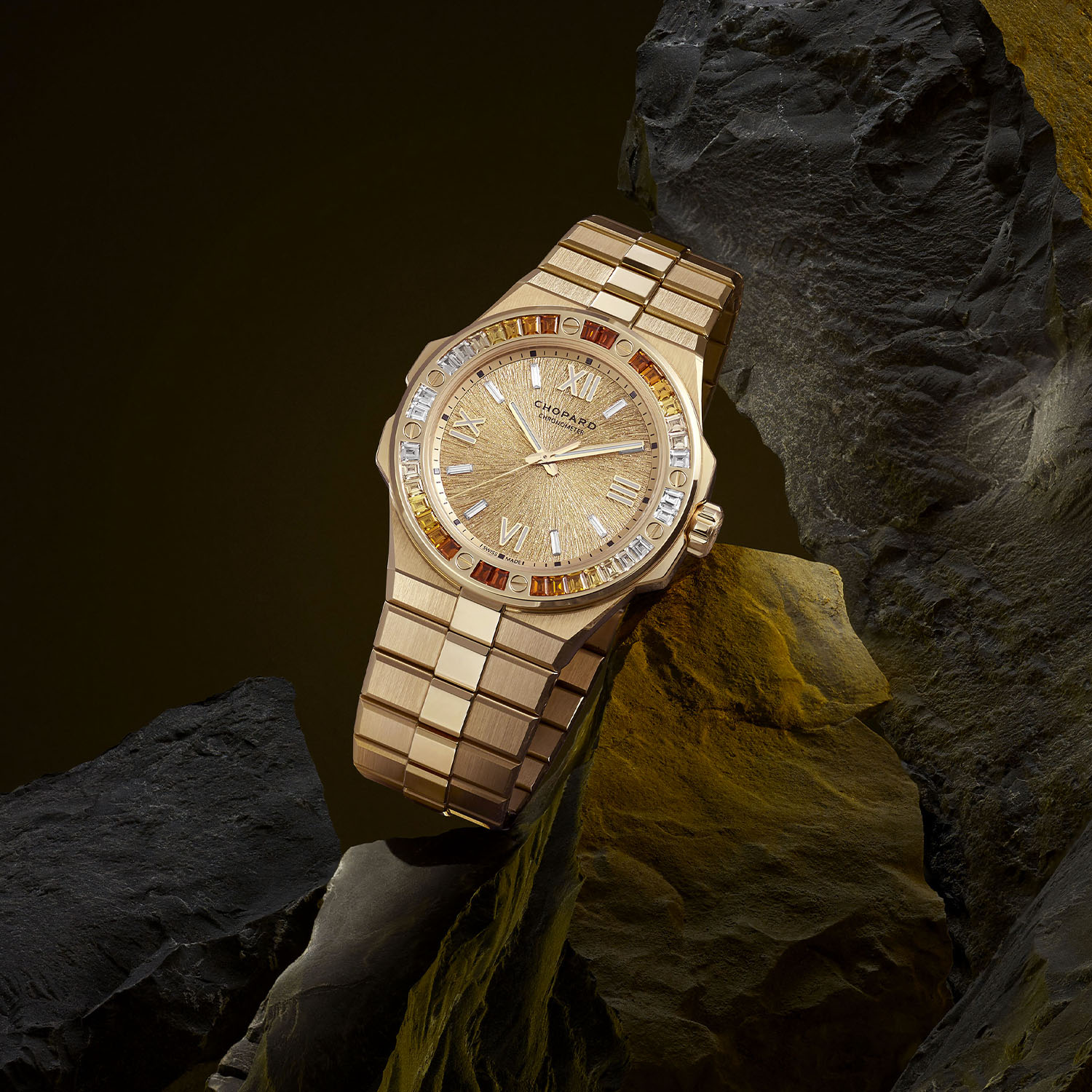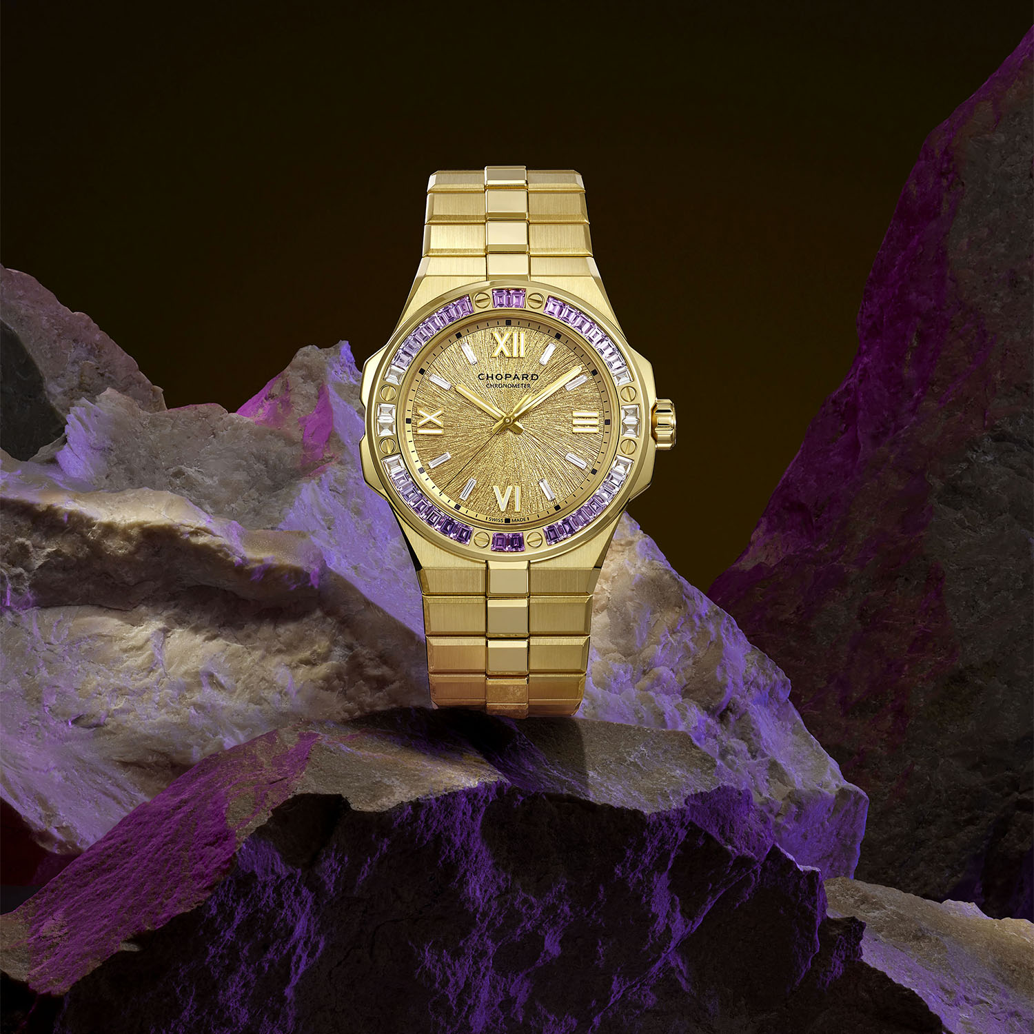 Ethical gold and gradient coloured gemstones embellish Chopard’s luxury sports watch.