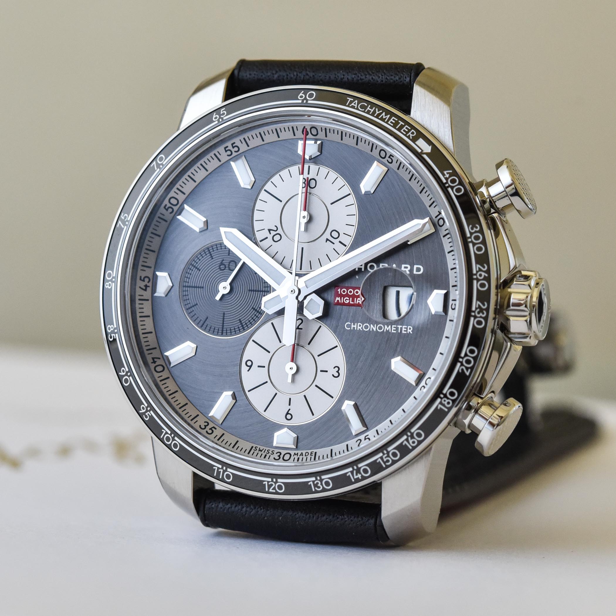 Classy chronographs with chronometer-certified automatic movements celebrate Chopard’s ongoing commitment to the legendary 1000 Miglia car race.