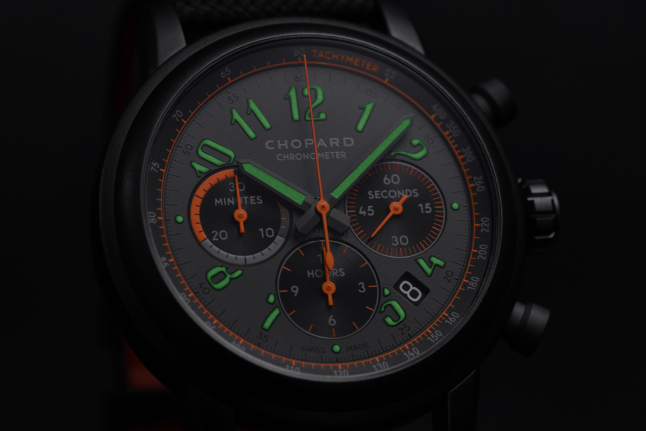 Chopard’s Mille Miglia Classic Chronograph gets the Bamford makeover, resulting in a sportier, edgier and more contemporary watch.