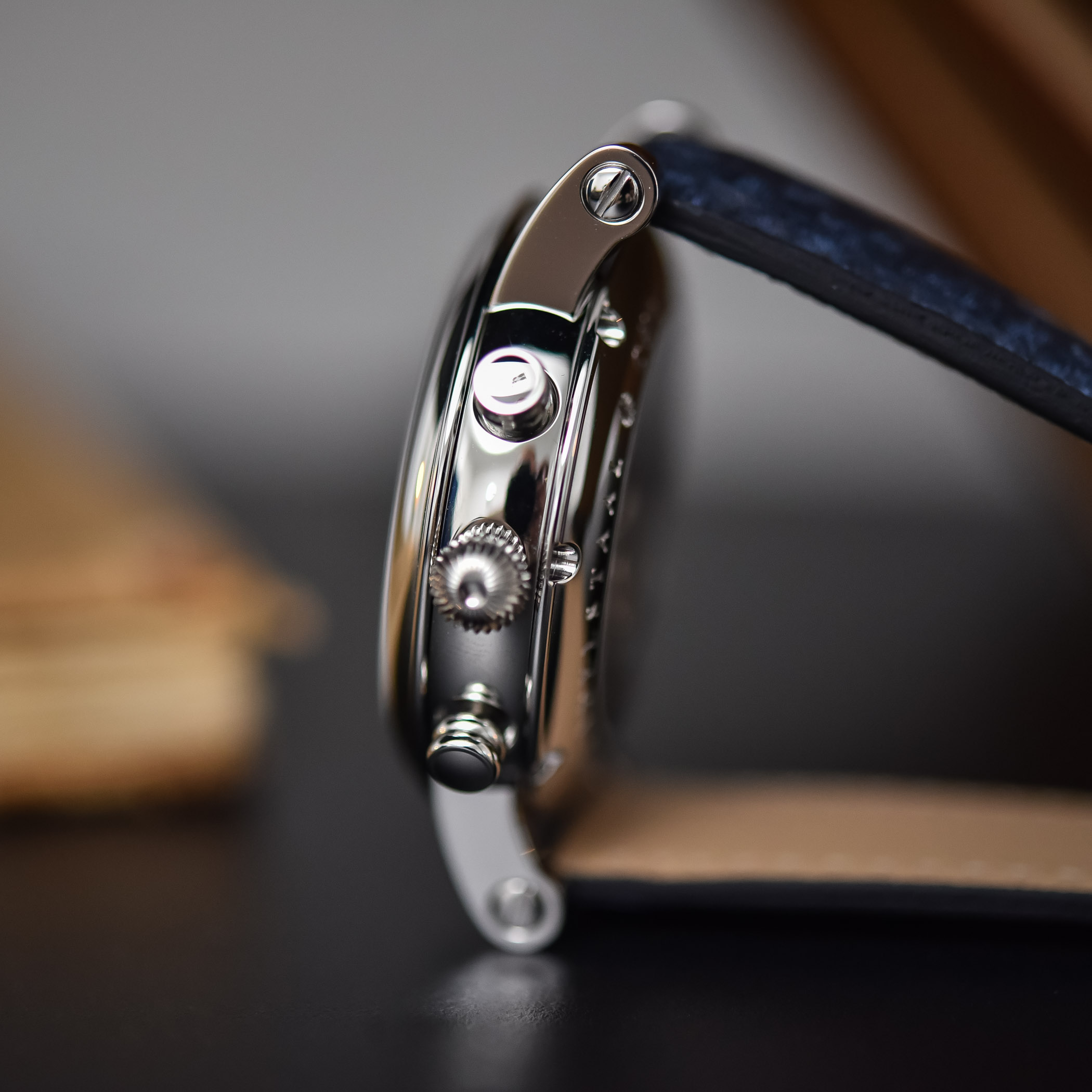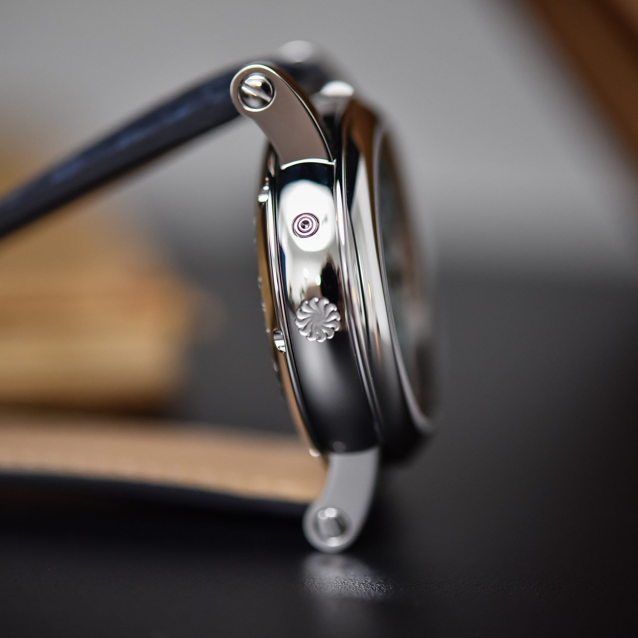 This year, the dial and movement decoration get a thorough facelift. What doesn’t change is the technical base of the watch. The steel case remains identical, at 40mm in diameter, with a fully polished surface. Rounded with pronounced lugs featuring a screw-cap, it has all the ingredients of a CVDK, including the quicky chronograph pushers and the onion-shaped crown. There is no evolution here since this case has a lot to do with the brand’s appeal.