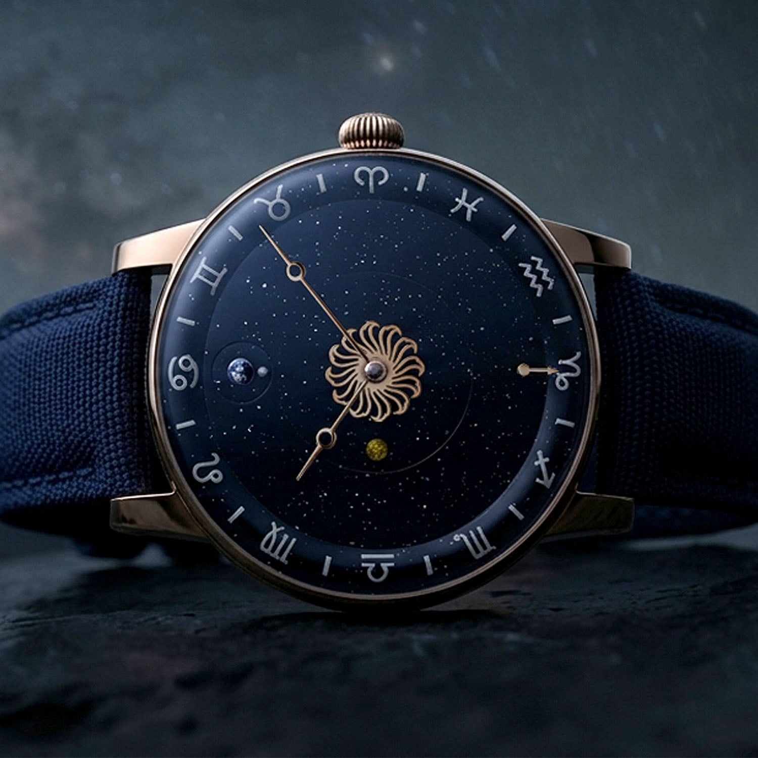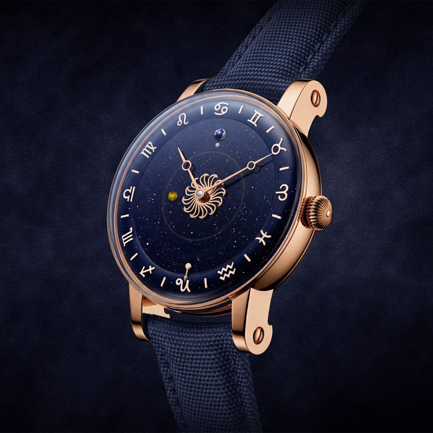 Miniature representations of the celestial motions of Venus, Earth and the Moon animate the dials of the Venus Zodiac and Venus Annual Calendar.