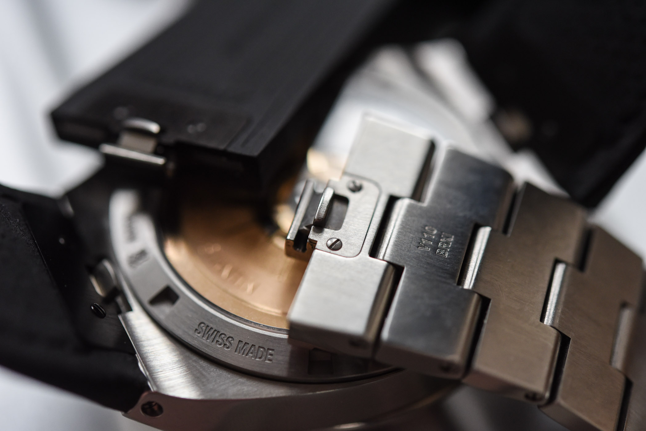 Yes, I think it’s a very interesting question. I think for us, you know, we don’t make watches with a 50mm diameter and 21mm thickness every day. I think what’s really challenging is its volume. Our engineers thought about something which is quite interesting. The designers made a totally symmetrical case, meaning that you can wear the watch on both sides. We have an integrated system in the strap, so you push a button, a push-piece on the strap, from behind, and you release the strap from the case. You just flip the watch on your wrist and then re-fix the strap with the push-piece. This way you can read the time on the two faces of the timepiece. So, that’s what led to optimizing the readability first, and secondly, the total thickness of the timepiece.
