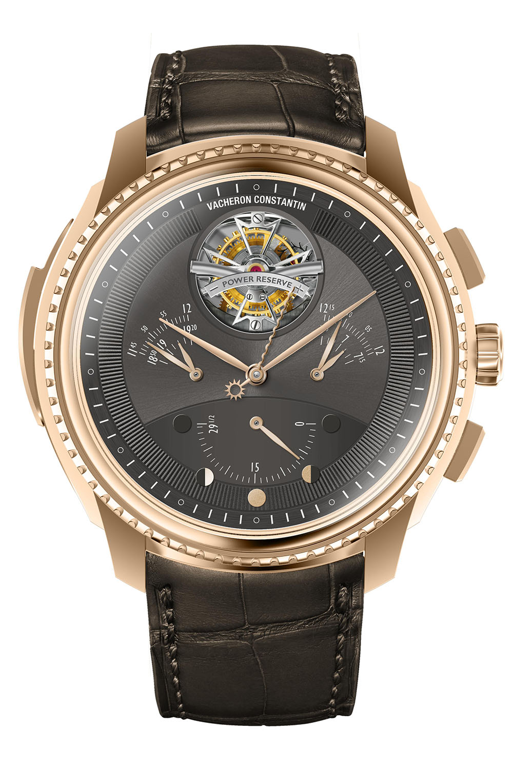 Since we have a great tradition in the field of chronographs, we wanted to pay tribute to the early chronographs wristwatches by having a single-button chronograph. This is a wink to the tradition of the early chronographs at Vacheron Constantin. We thought about having a kind of double-precision, so we need the precision of short-time measurement with a chronograph and we need precision, accuracy, with the tourbillon.