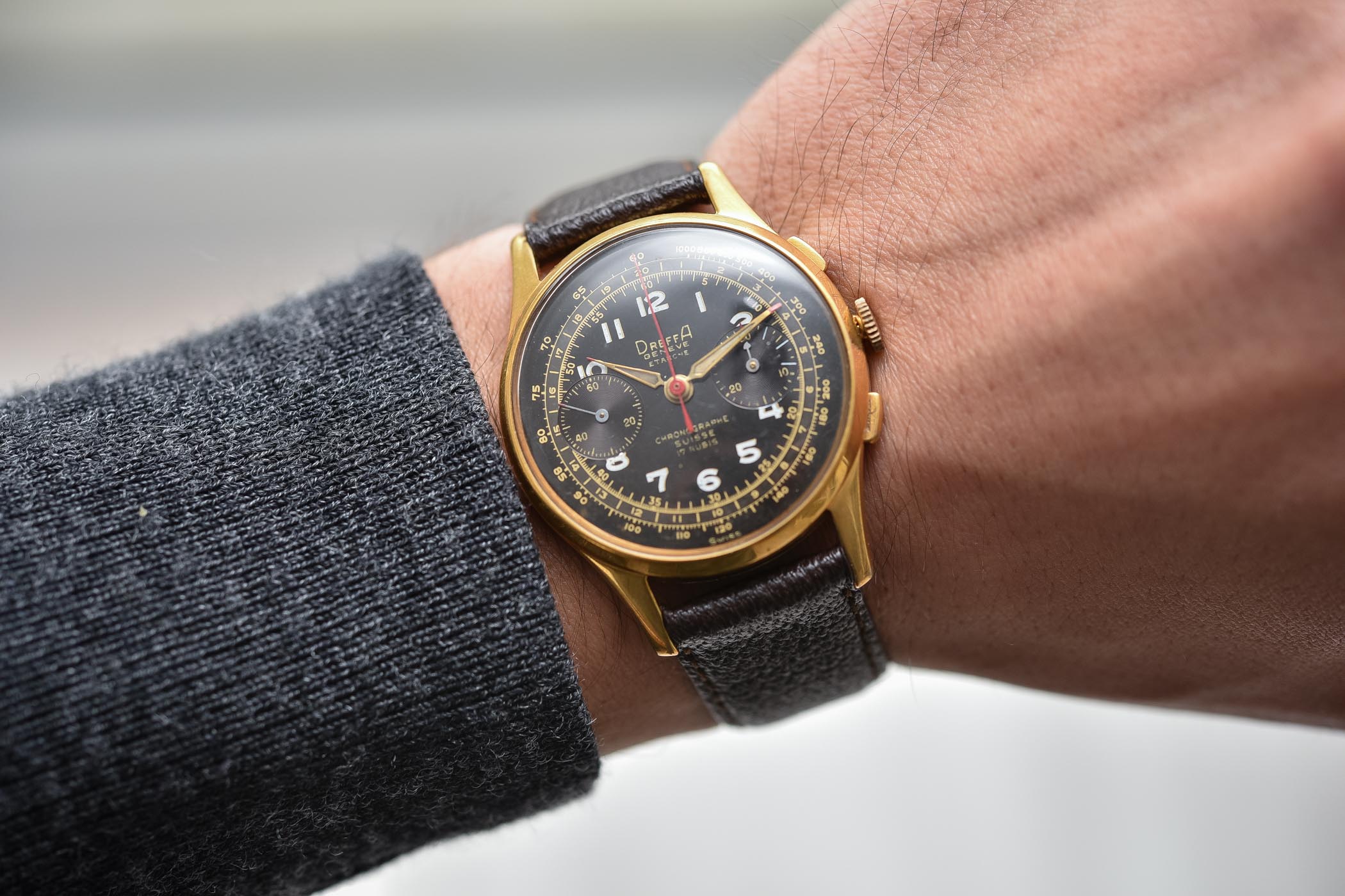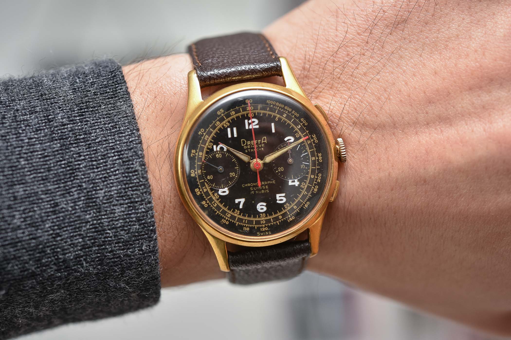 You can find a lot of Chronographe Suisse watches out there with obscure names on the dial from long-forgotten brands. Dreffa is one of the better-known companies (not that it’s widely recognized) that branded Chronographe Suisse dials with its name. Established in 1874 in Geneva, Switzerland by Armand Dreyffus, Dreffa became a luxury watch brand that pushed itself into the US market in the 1940s under the name, Dreffa Geneve. Many of its models were Chronographe Suisse pieces, often with both company names on the dial (Dreffa Geneve and Chronographe Suisse). Jacques Maguin acquired the Dreffa brand in 1985 and modified the logo, and it was acquired again in 2014 by TGX Holdings, with production continuing in both Geneva and Glashütte.