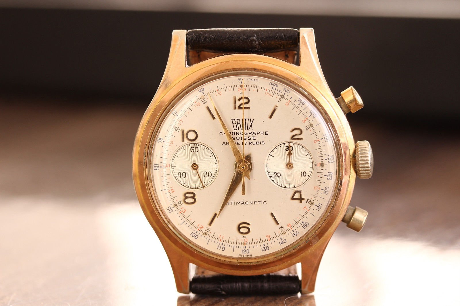 Note: photos of the Britix and Ultimor watches, as well as the Venus and Valjoux movements, have been found on eBay (where you can find dozens of Chronographe Suisse watches).