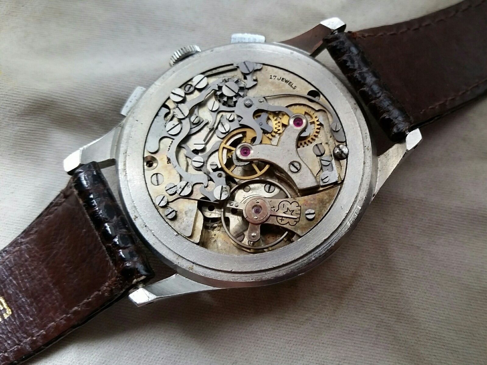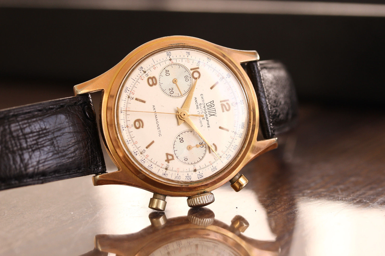 I recently got my German grandfathers watch he wore in WW2. My father told me his father traded sugar he stole from the Americans for the watch in a POW camp in Italy Pryor to 1943. It’s well worn. My father wore it in his younger days and replaced the bracelet. The Only marking I can make out on the dial are “Chronographe Suisse” “antimagnetic” “Swiss made” no other brand name is visible. It’s a telemeter chronograph and “fond acier inoxydable” on the back of the case and I can’t make out the number underneath it. My grandfathers war watch is worth more in history/sentiment then anything else I’m sure.