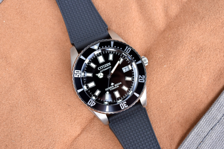 Under the name Promaster, Citizen shows a long tradition of big and bold, but also highly capable diving instruments. Looking back at the history of the collection, which we explored in this article, you’ll see that the design of the 1982 Citizen Professional Diver 1300m or the emblematic Citizen Aqualand Promaster (a real icon of the tool-watch industry) have greatly influenced later creations, including this recent Promaster Diver 200m collection. Textured, full of facets and recessed areas, with apparent screws and studs, with protective elements all around, there’s not much hidden regarding the intentions of these models. Ultra-focused and strongly designed, these watches are not for the faint-hearted. They are made for action, and that’s about it.