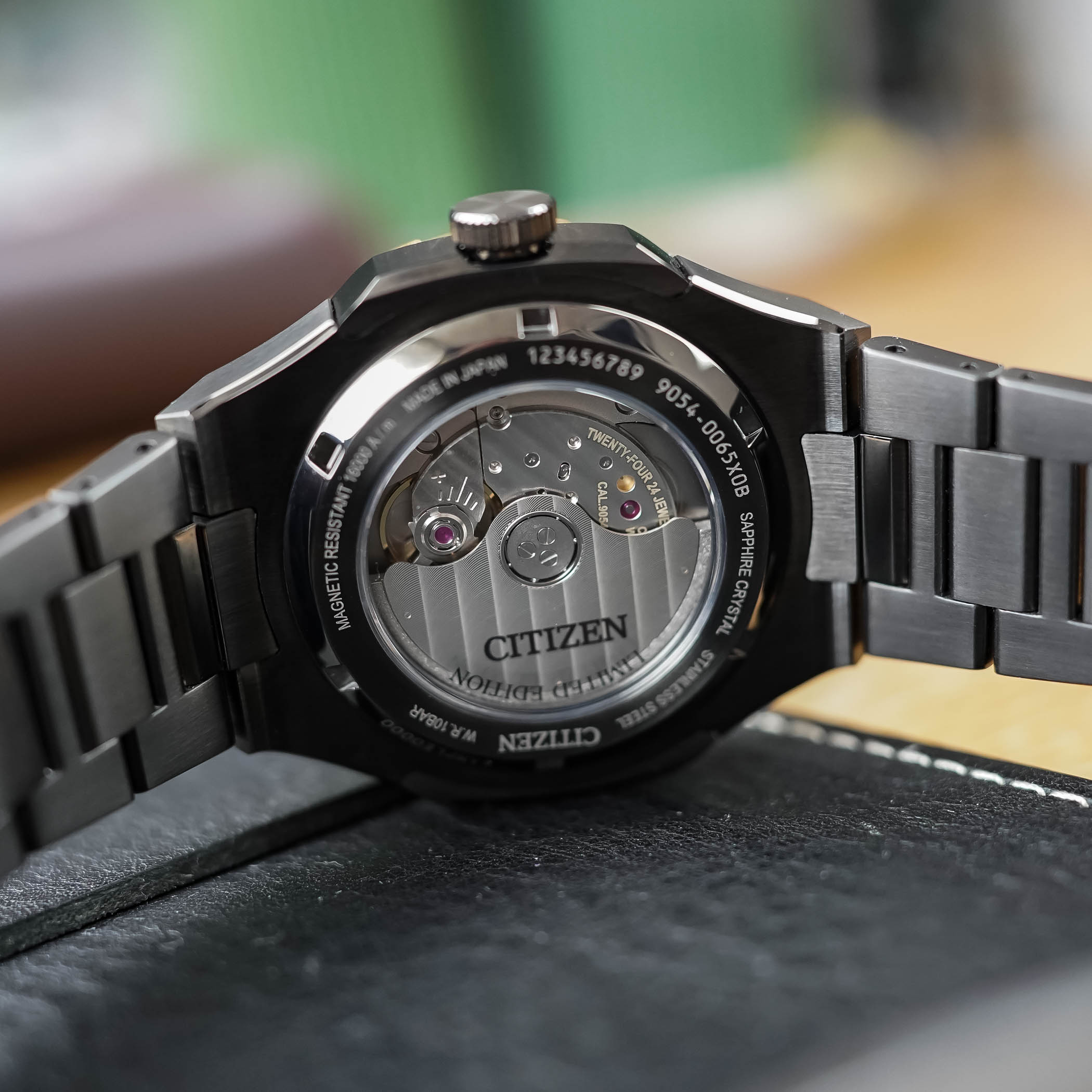 Inside this new reference NB6035-55H beats the in-house automatic calibre 9054. As a full-fledged manufacture, Citizen is capable of making virtually everything itself, which is commendable, especially on this price level (more in a bit). The movement runs at a rate of 28,800vph and delivers a respectable 50 hours of power reserve.
