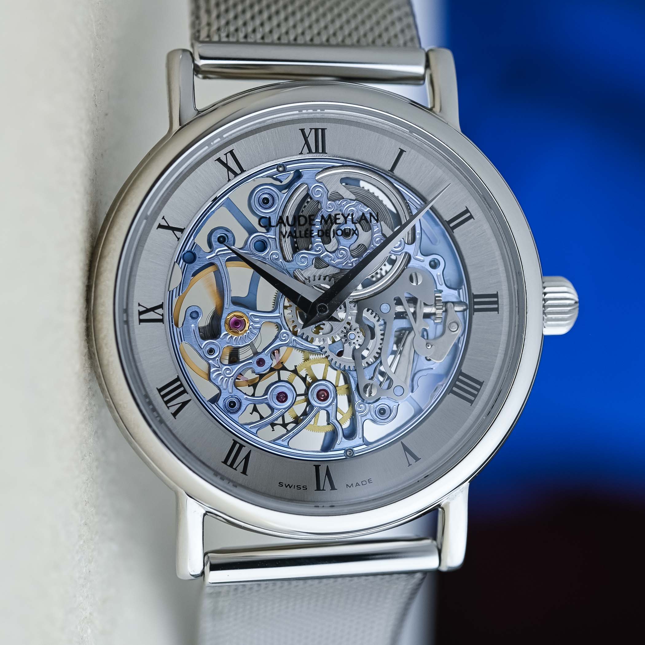 Specialized in skeletonized watches, Claude Meylan is an independent watchmaker based in the Vallée de Joux, in the small village of L’Abbaye. Completing an already large collection of openworked models such as the Tortue, the brand now presents a new version of its Lionne feminine watch with movements in pastel tones and openworked to create a lace-like structure. Meet the contemporary yet classic Claude Meylan Lionne Dentelles.