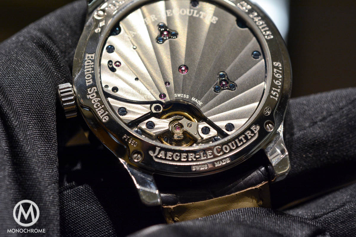 - Movement: hand-wound movement, Jaeger-LeCoultre manufacture calibre 947, crafted, assembled and decorated by hand, 21,600 vph, 15-day power reserve?, 413 parts?, 43 jewels, 8.95 mm in height? and 34.7 mm in diameter