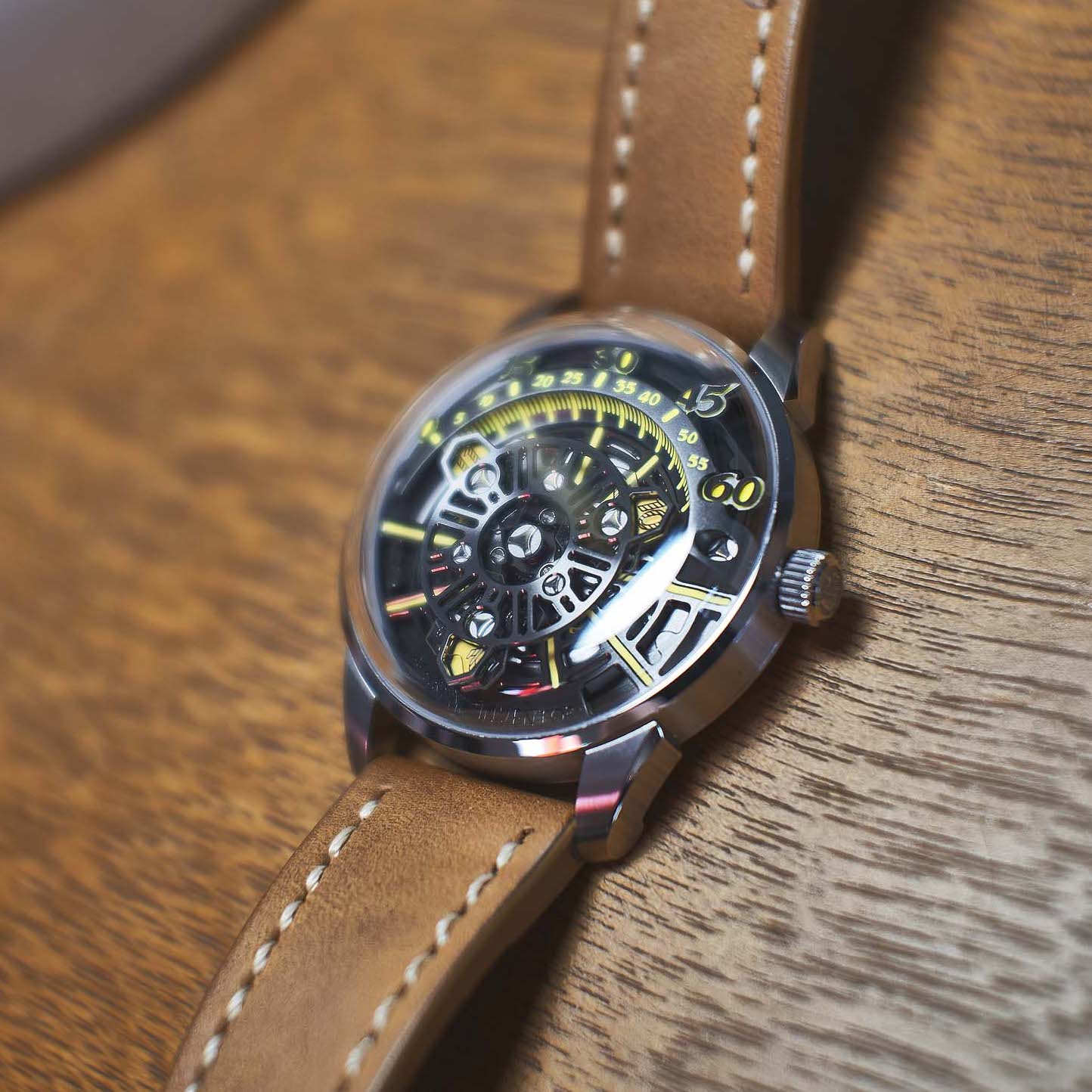 The technicality of the movement, the overall appearance and intricacy of the dial, and the very clear homage to Urwerk’s design language are all factors that drove me to this piece. The Rotary watch by the same company was also a strong contender and draws very closely from the Urwerk + MB&F Nitro C3H5N3O9 collaboration which is another beautiful piece. All in all the B023 won out just based on preference, no other deeper meaning. I just liked it more.
