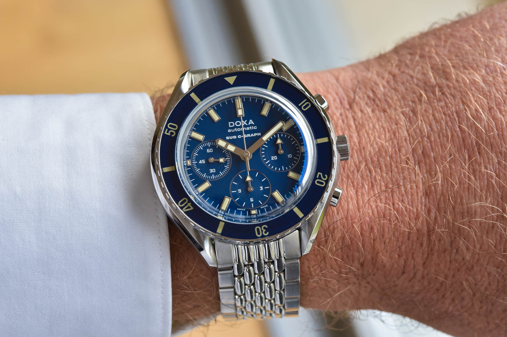 When it comes to specialized diving instruments, Doxa is a brand that often finds its way in our guides. The brand has true legitimacy in this field and is no stranger to diving chronographs – already in the past, with for instance the T.GRAPH, recently re-edited. In addition to this confidential and niche model, the brand also introduced recently an accessible, solid and more mainstream chronograph, the SUB 200 C-Graph Available in the usual 6 dial colours the brand is famous for, it is a great alternative to the usual suspects with tried-and-tested Sellita movement, great overall quality and specifications (sapphire bezel, BOR bracelet, 200m WR) for a reasonable price. Read our introducing article here.