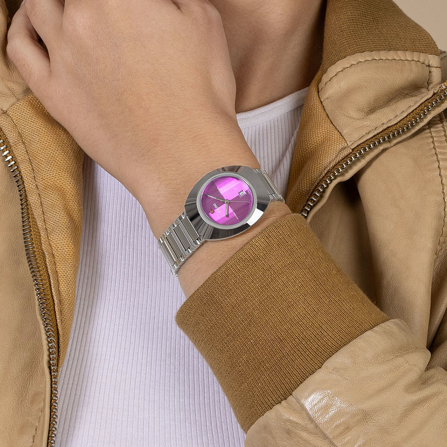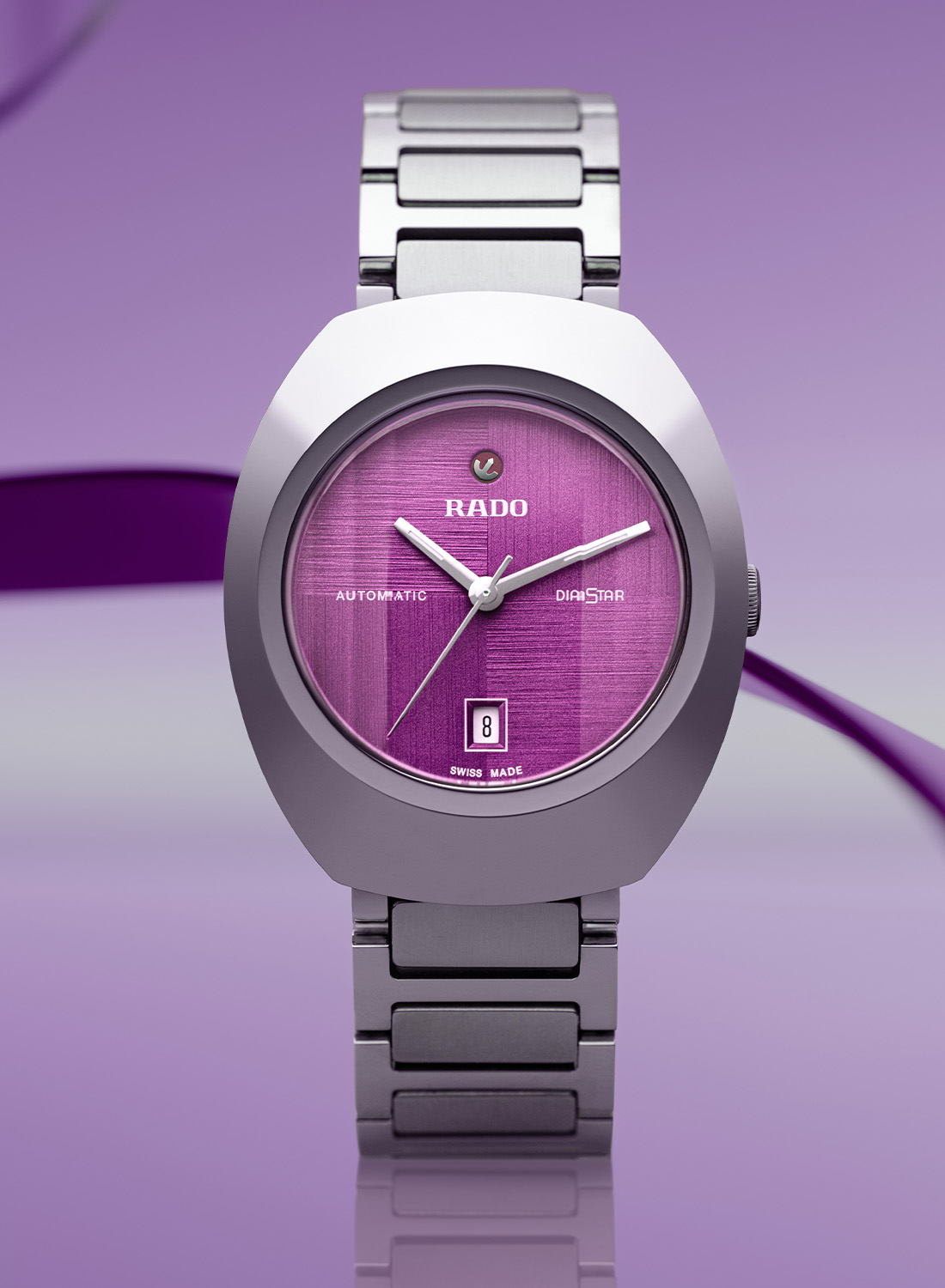 Rado’s groovy Diastar dresses an XXS case size and fashionable colours.