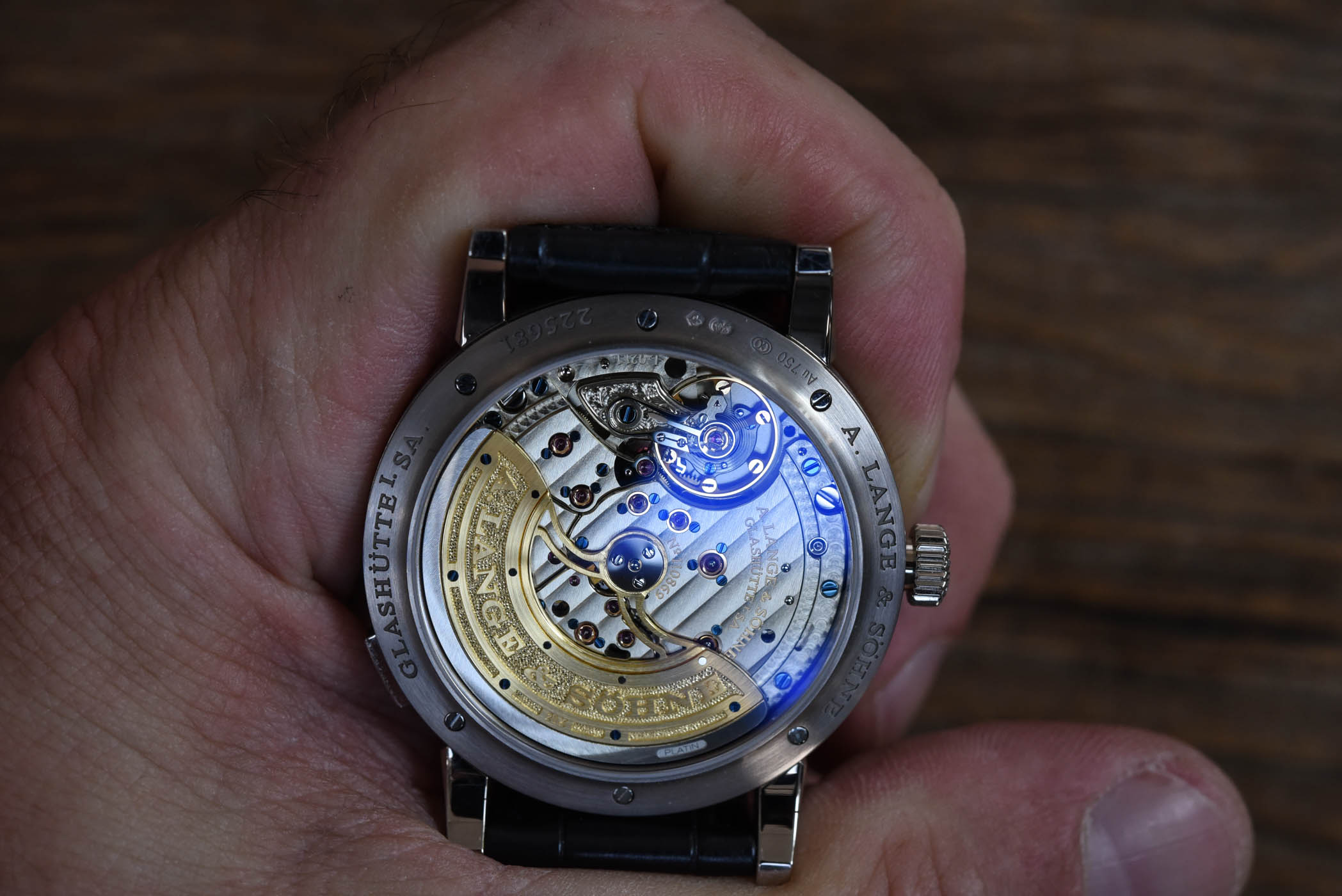 However, due to its overall classic style and restrained proportions, I wouldn’t be shy to wear the Lange 1 as a dress watch (especially in yellow or white gold with a silver dial). Because the hours and minutes sub-dial is on the left side of the dial, often slipping underneath your cuff, we could even argue that it’s a perfect dress watch as dress watches are meant to be discreet about the time.