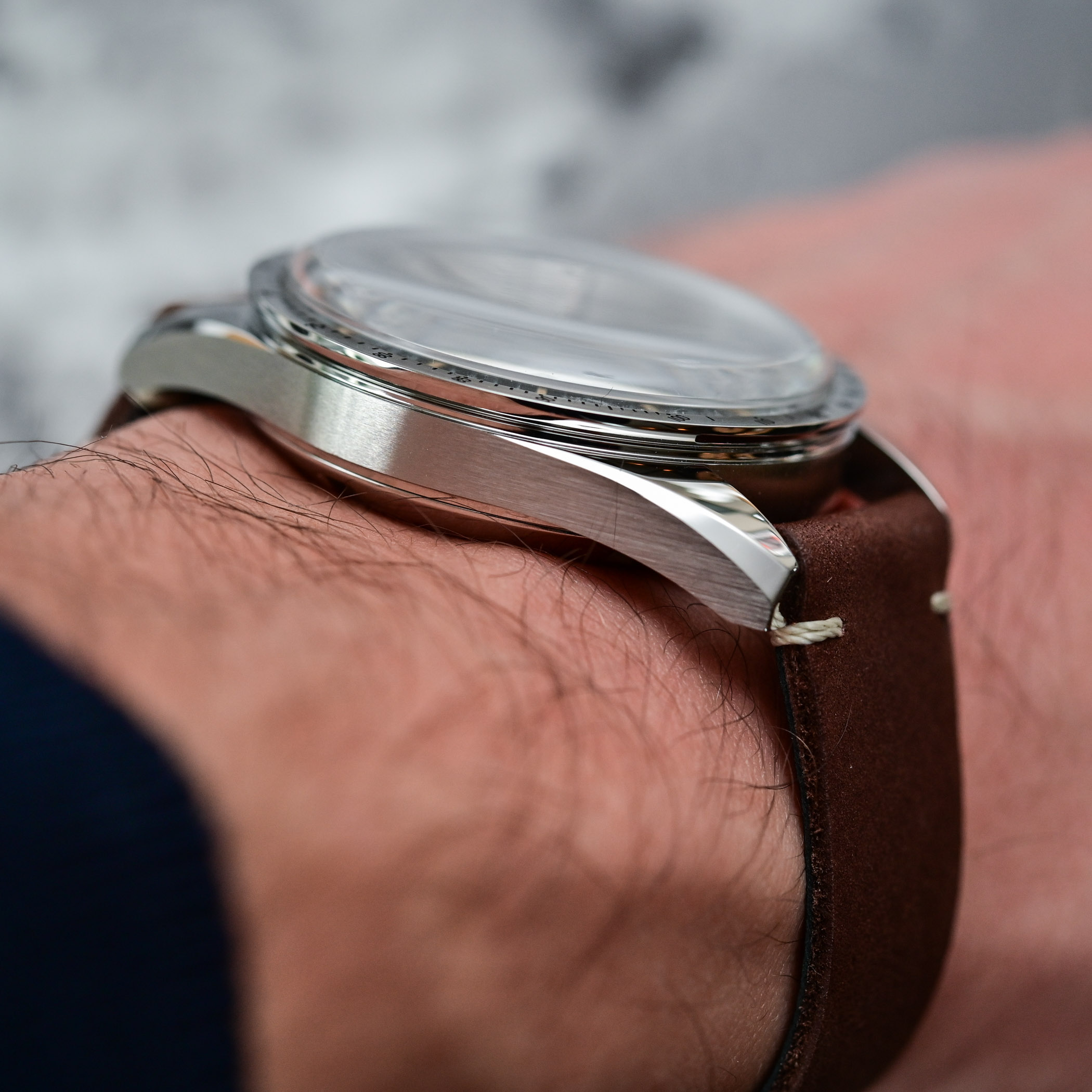As you can see here photographed on my 16.5cm wrist, the two watches wear practically identical, despite an almost 3.5mm difference in diameter. The lug to lug being the same, this results in a 60th anniversary edition that feels larger than what the numbers suggest. The difference in height is almost impossible to notice and comfort is equal. Light and versatile, both can be worn at the city or even with a suit.