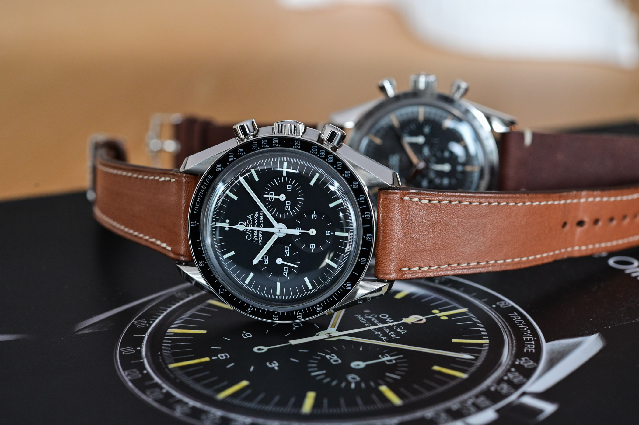 What we have here are two great Speedmasters to consider on the second-hand market. Indeed, if you want a proper vintage-inspired model, you’ll have to look at the Calibre 321, which means waiting list and EUR 13,900. Still, it is according to us here the ultimate Speedmaster now available. If you want a new Moonwatch Professional, you’ll have to look for the new Master Chronometer models here, with a starting price of EUR 5,900.