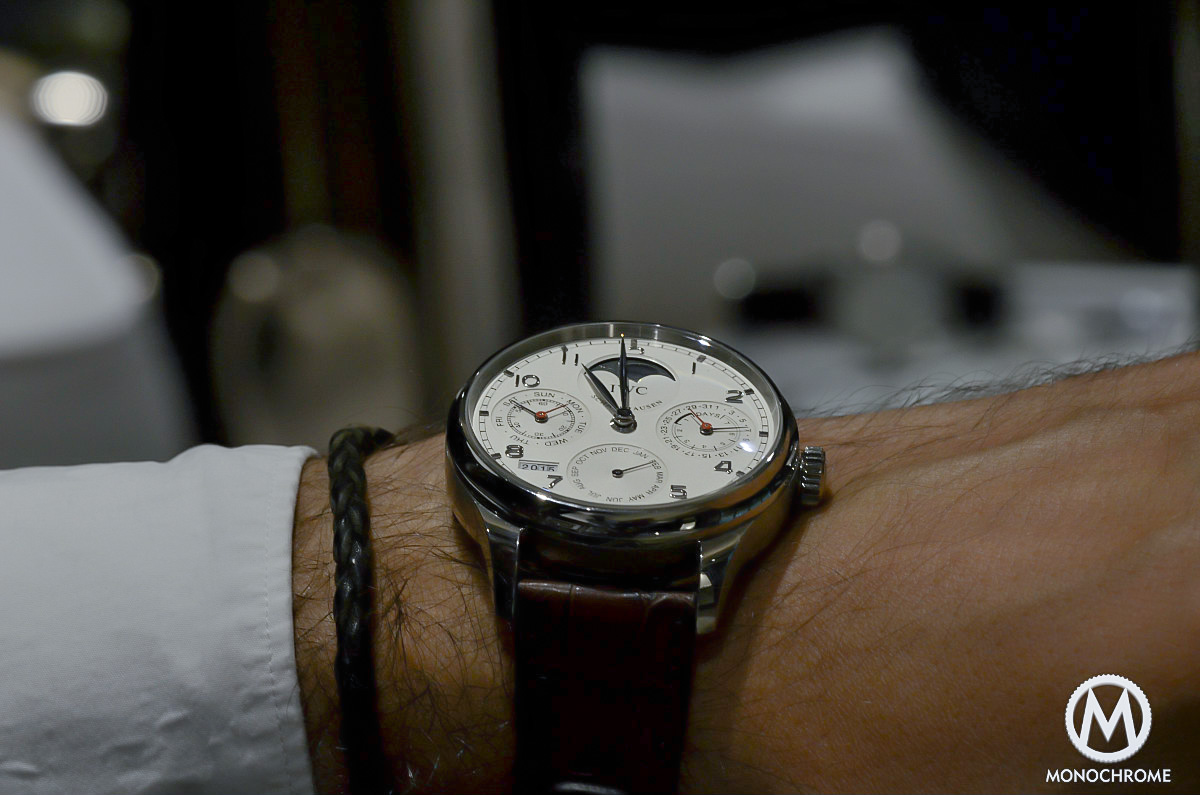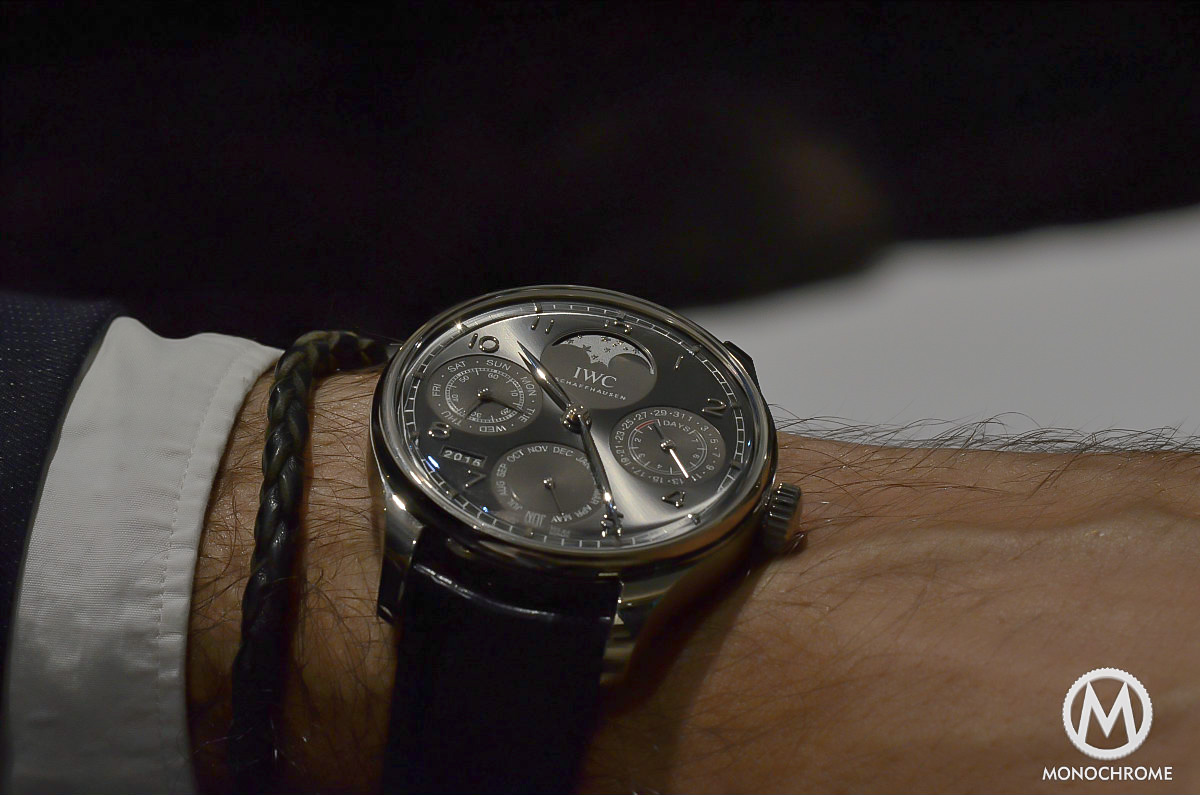 We at Monochrome obviously love IWC watches. Especially when it comes to their iconic pieces. The IWC Portuguese Perpetual Calendar is such a piece. First introduced in 2003, this watch has been subject to minor changes every couple of years, without dramatically changing its recognizable identity. So, it’s now time for us to compare the brand new 2015 edition with the previous version, and to see what changes can been seen – or maybe be unseen?