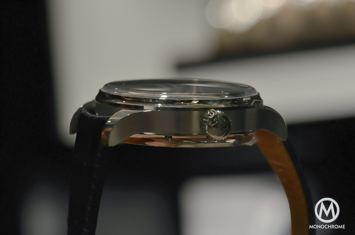 The overall movement had been redesigned with new bridges, more open to have a better view on the technical elements. Finally, there’s a nicer finish, with beveled angles on the bridges and more details on the gears, bridges, wheels, screws (now blued).