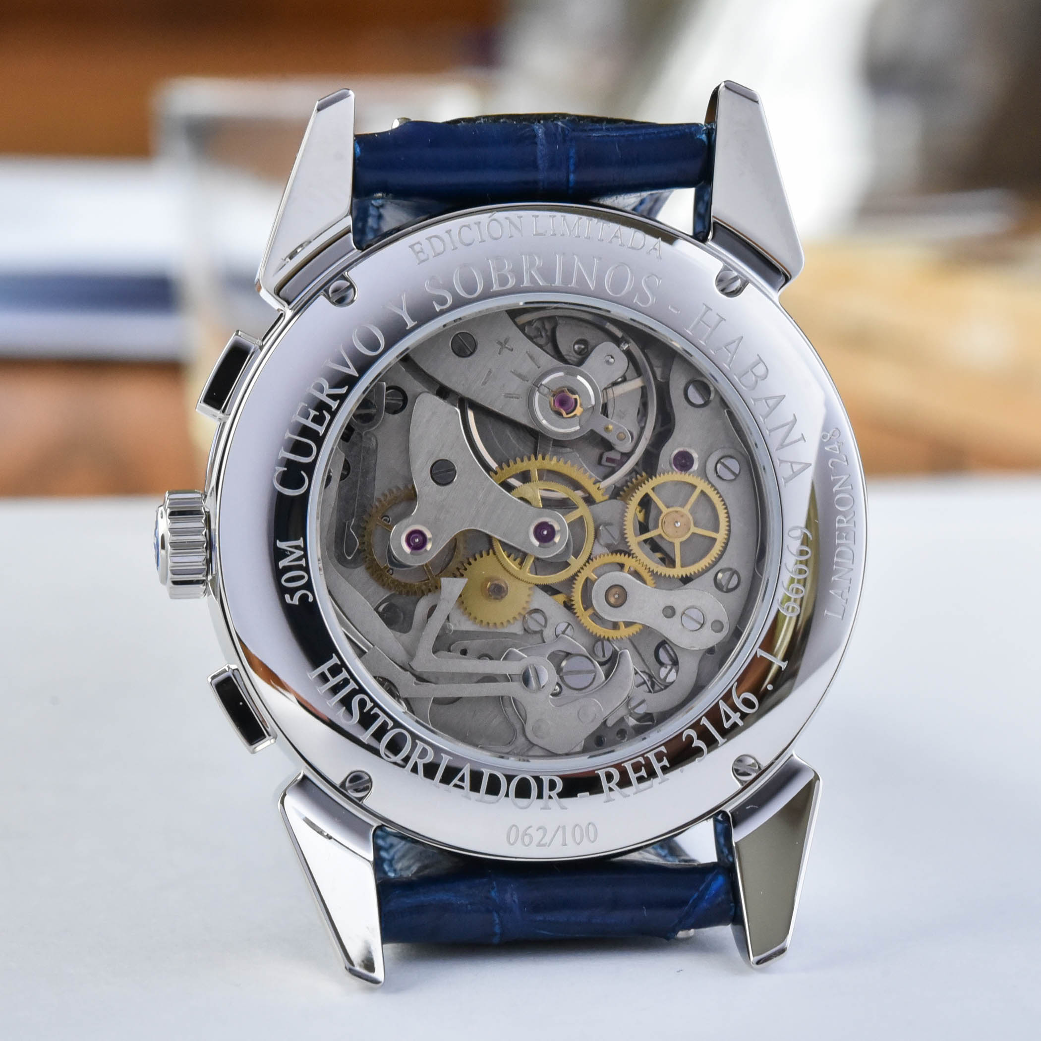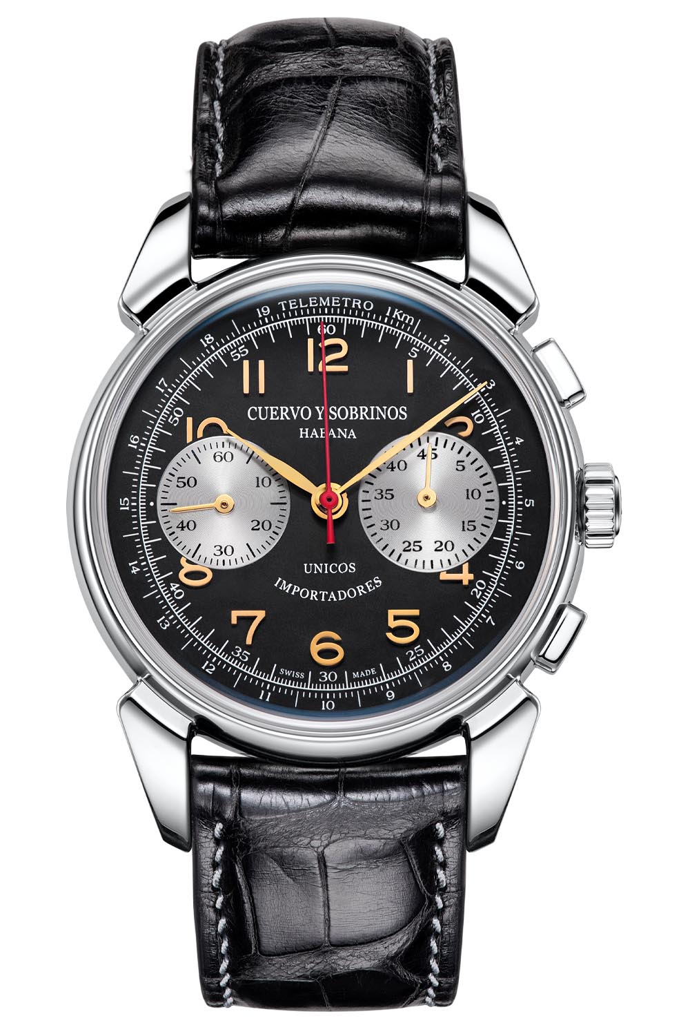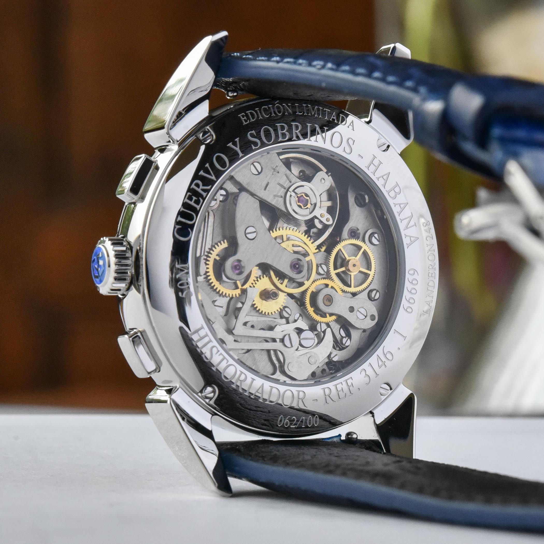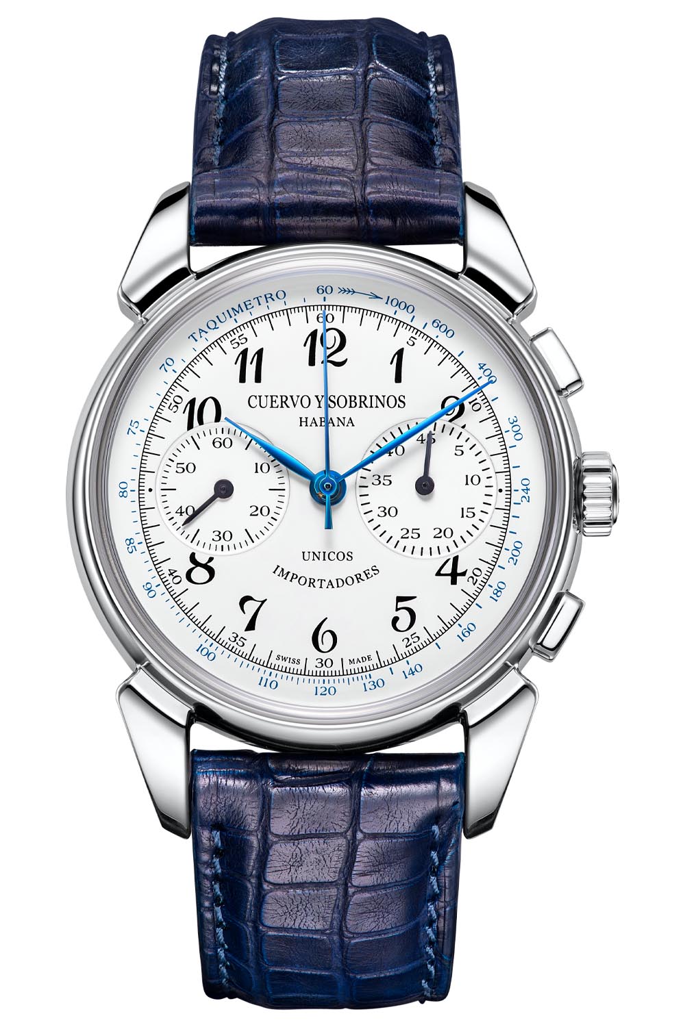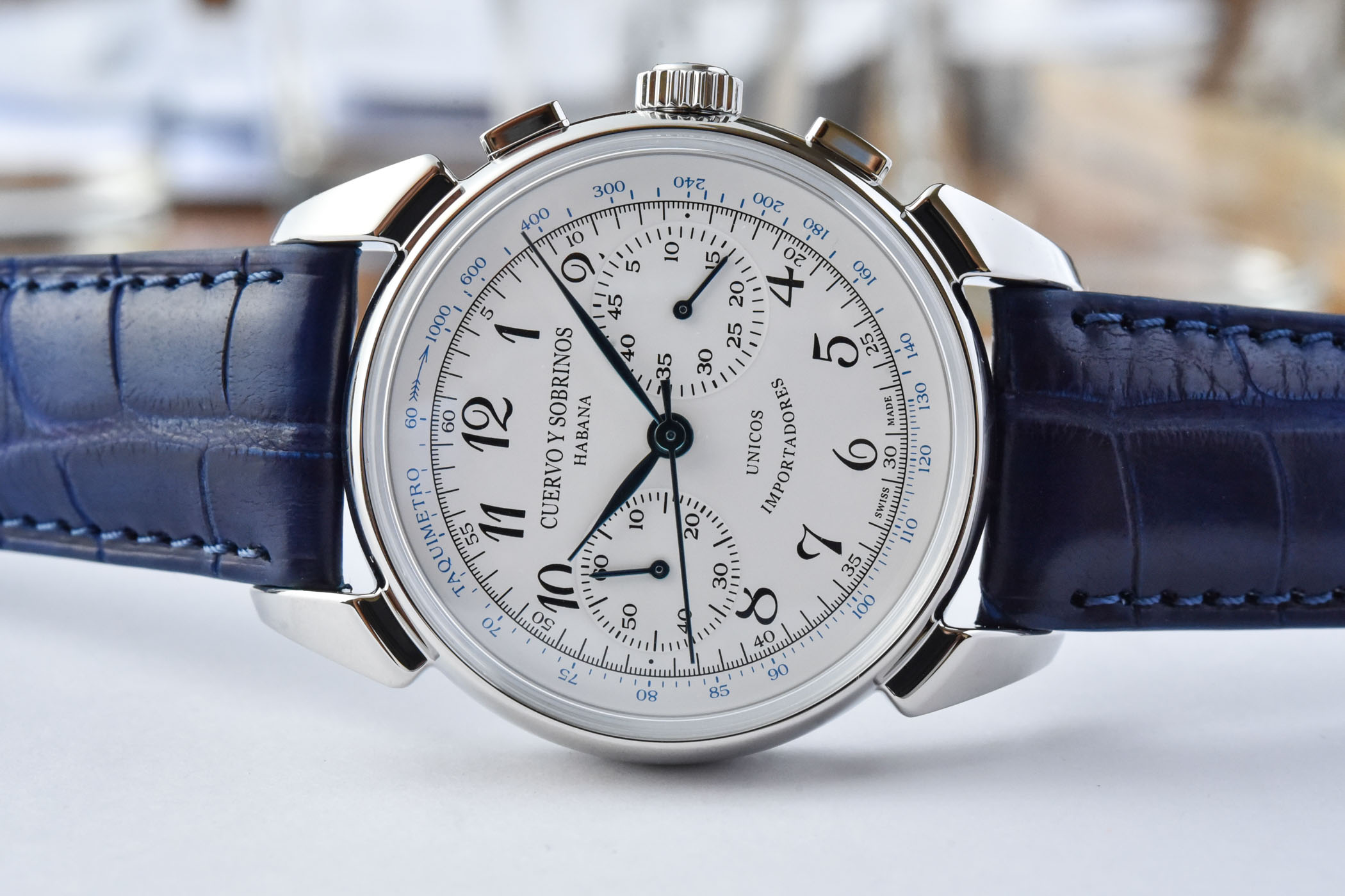 Cuervo’s roots began as a boutique in Havana, Cuba in 1882. Reputable watch companies like Vacheron Constantin, Patek Philippe and Rolex produced watches exclusively for the store, each one bearing the “Cuervo Y Sobrinos” name upon its dial. The ‘unicos importadores’ lettering seen on the new Historiador Landeron models echoes that same detailing on the original 1950’s vintage wristwatches. Translating to ‘only importers’ it reflects the watchmaker’s exclusive reputation at that time.
