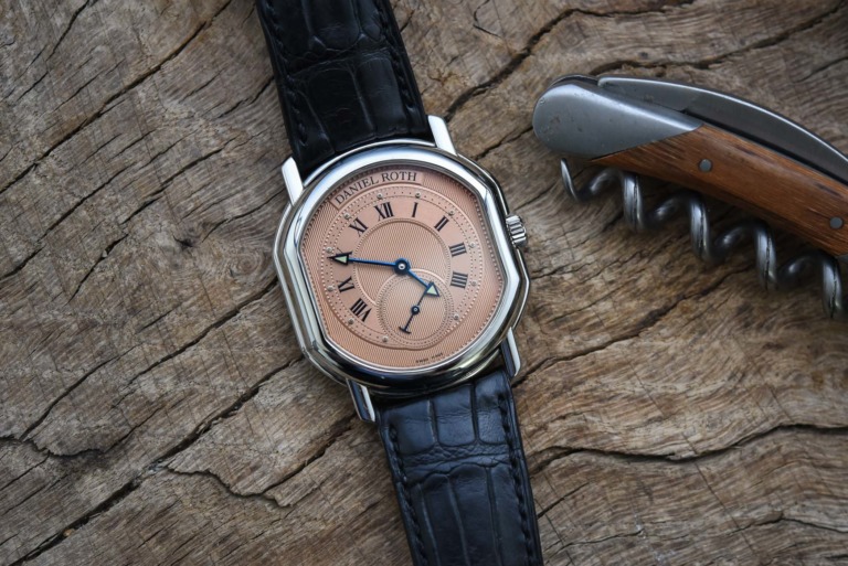 Sagar, @watchfoodwithme – It was @Orangedial17 a.k.a Wayne’s Instagram handle, where I discovered this brand Daniel Roth in late 2020. He had a beautiful salmon dial chronograph and then I started learning about the brand and stumbled upon Frank’s Daniel Roth small seconds with a salmon dial on a MONOCHROME article. Trust me, I tried to find it everywhere, but I could only manage to get the Daniel Roth salmon dial chronograph.