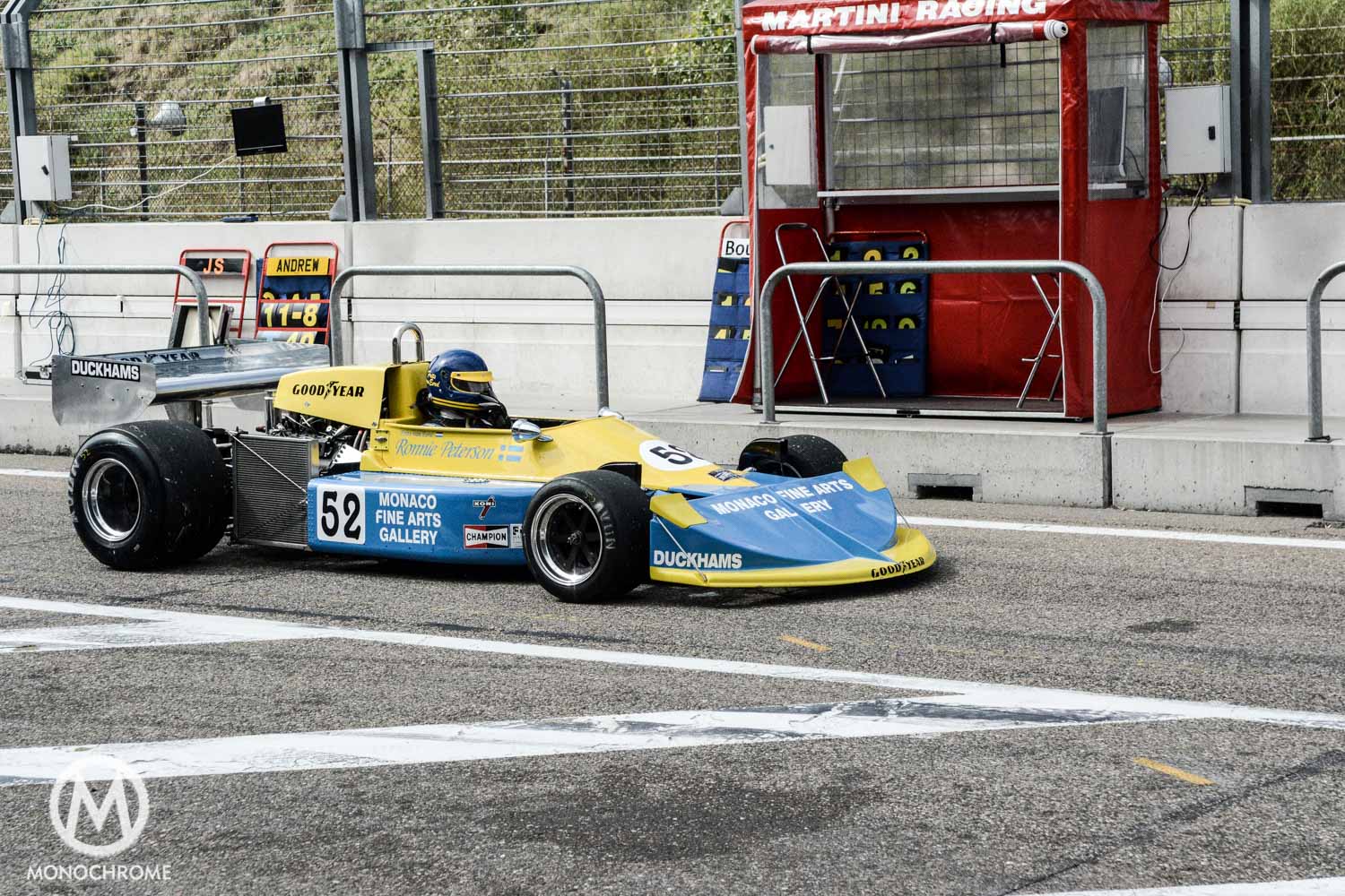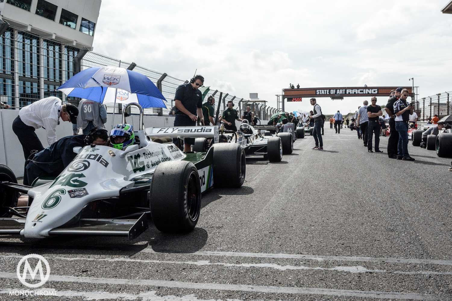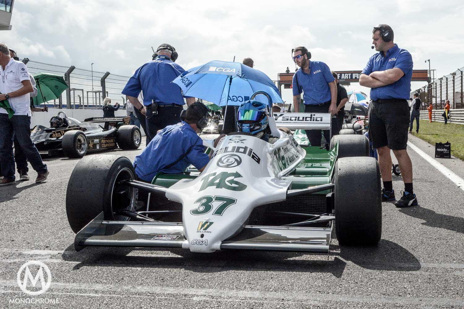 When we arrived the pre war sports cars were racing and it sounded like a rolling thunder. When you know these type of cars, and have a passion for such vehicles, their speed is almost unimaginable. During that race, a few old airplanes did a fly-by and they weren’t shy of making some extra noise. That was our welcome, and after a first drink, our paddock tour started. Since the FIA Masters Historic Formula One was about to start we visit the pit. One of the pilots just climbed into his historic Formula One car and we continued to witness the start right from the pit, followed by one lap behind the safety car, and than the start, after we got to take some photos on the grid. The oldest participating historic Formula One cars are from 1971 and the youngest date back to the year 1982; and I can still remember seeing these cars on a black-and-white television.