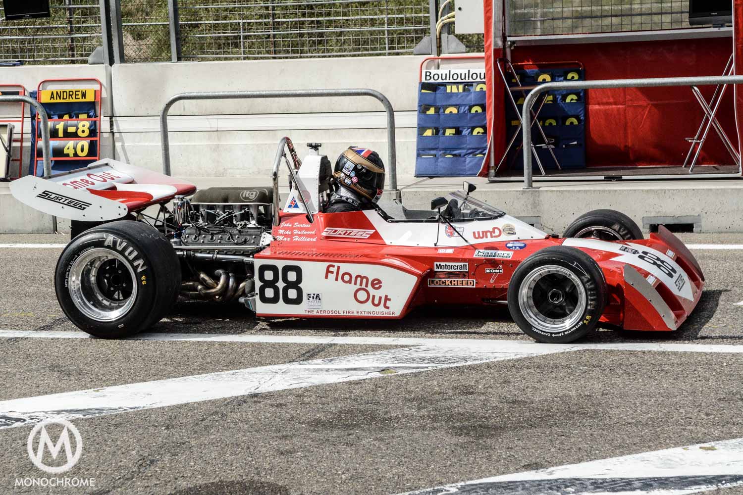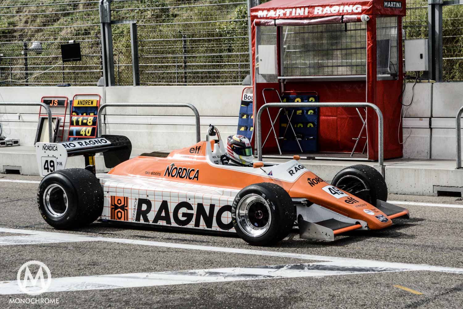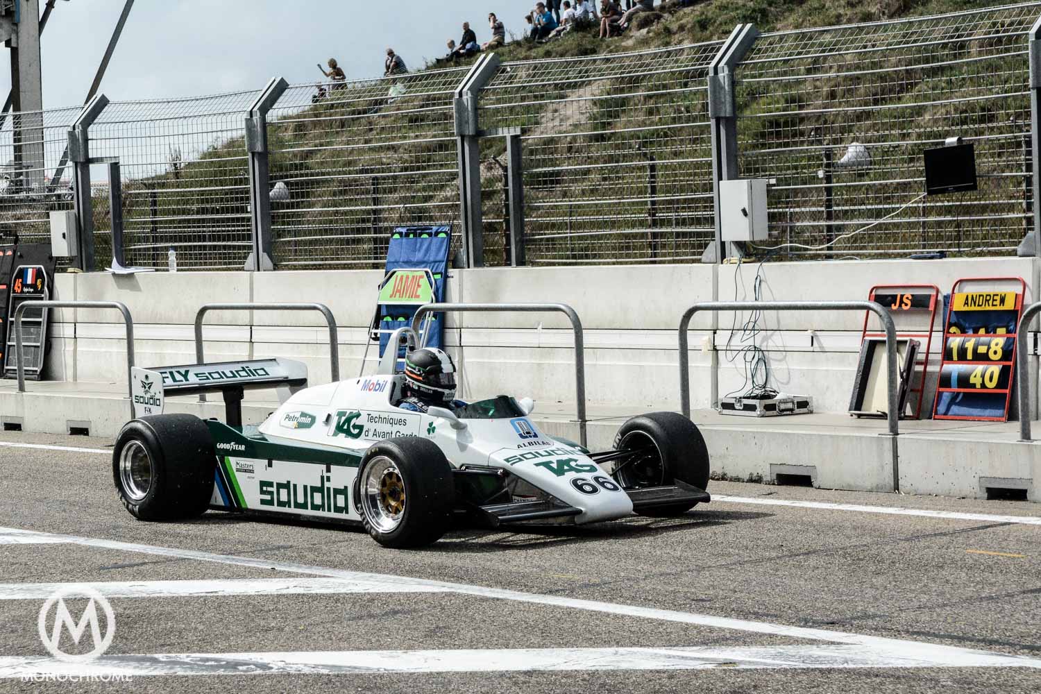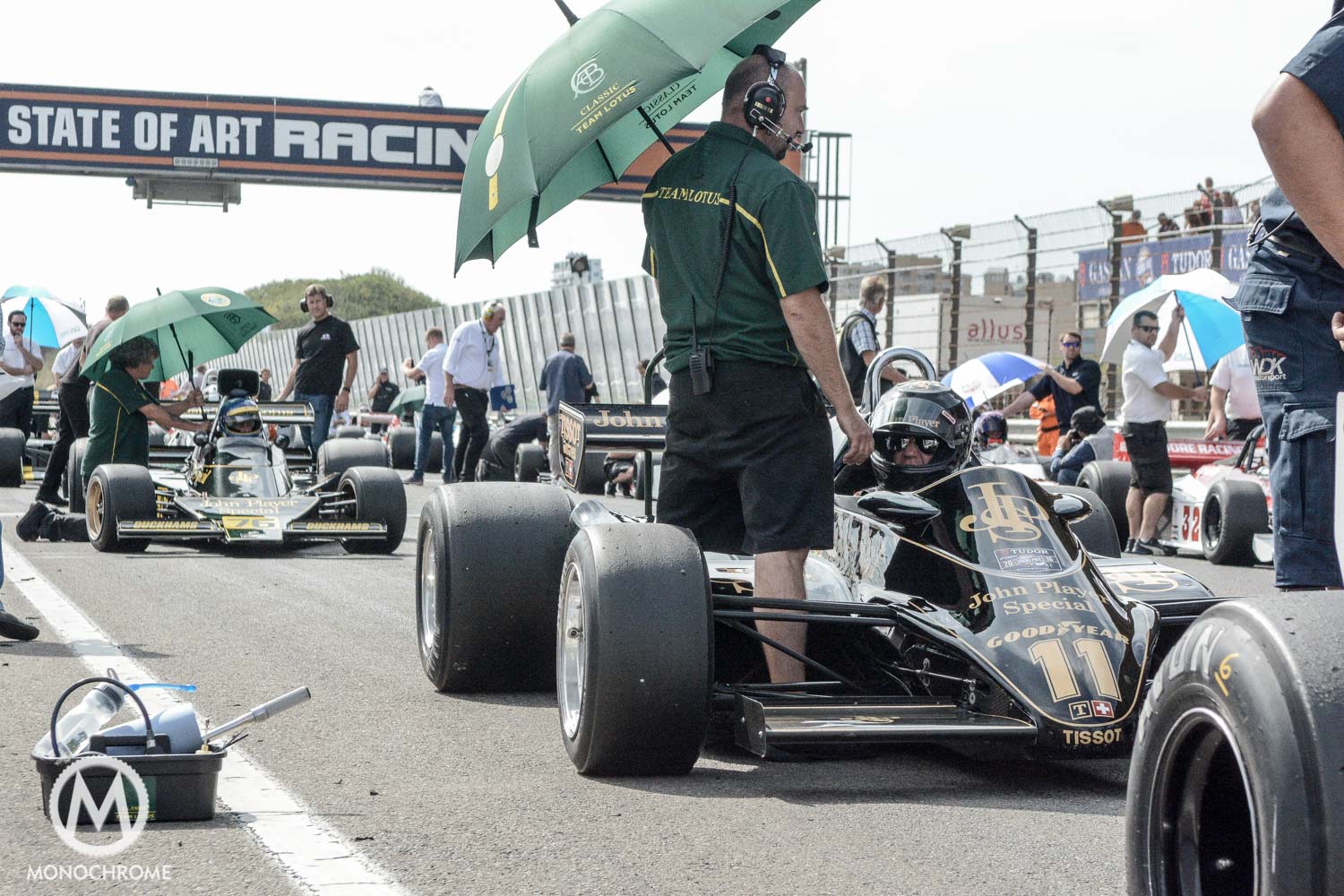 When we arrived the pre war sports cars were racing and it sounded like a rolling thunder. When you know these type of cars, and have a passion for such vehicles, their speed is almost unimaginable. During that race, a few old airplanes did a fly-by and they weren’t shy of making some extra noise. That was our welcome, and after a first drink, our paddock tour started. Since the FIA Masters Historic Formula One was about to start we visit the pit. One of the pilots just climbed into his historic Formula One car and we continued to witness the start right from the pit, followed by one lap behind the safety car, and than the start, after we got to take some photos on the grid. The oldest participating historic Formula One cars are from 1971 and the youngest date back to the year 1982; and I can still remember seeing these cars on a black-and-white television.
