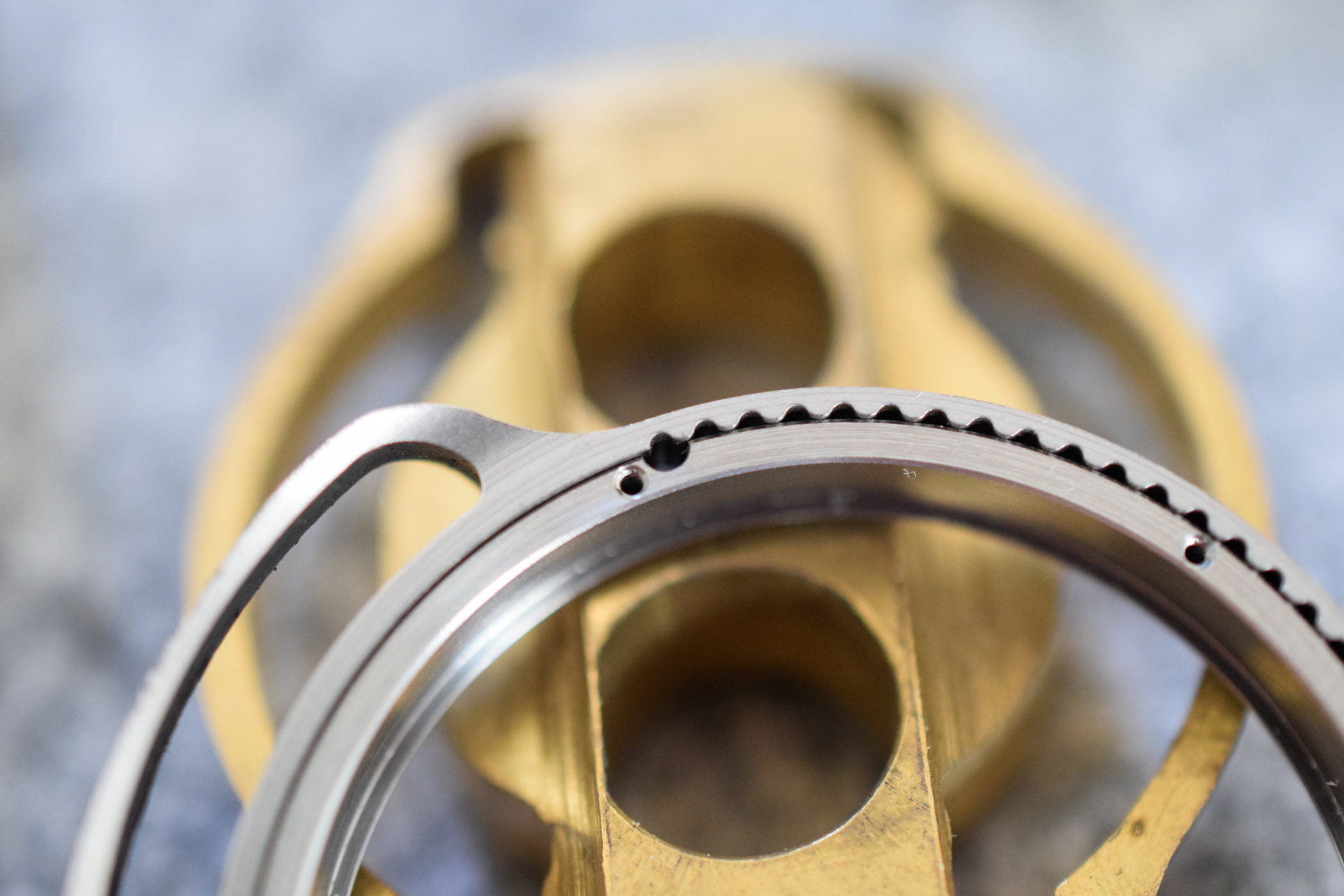 The challenge is tolerance, and still being able to use it as what it is intended to be – a watch! So is access to the crown, whether it is positioned “12-at-12” or “12-at-3”. The way Laurens has designed and constructed the case is actually quite brilliant. The crown has moved from the traditional position at 3 o’clock to the side of the top lug allowing for the maximum possible slide. A milled-out slot on the side of the case determines the full range of the slide, moving seamlessly from zero to ninety degrees, at which point the crown is positioned next to the other lug.