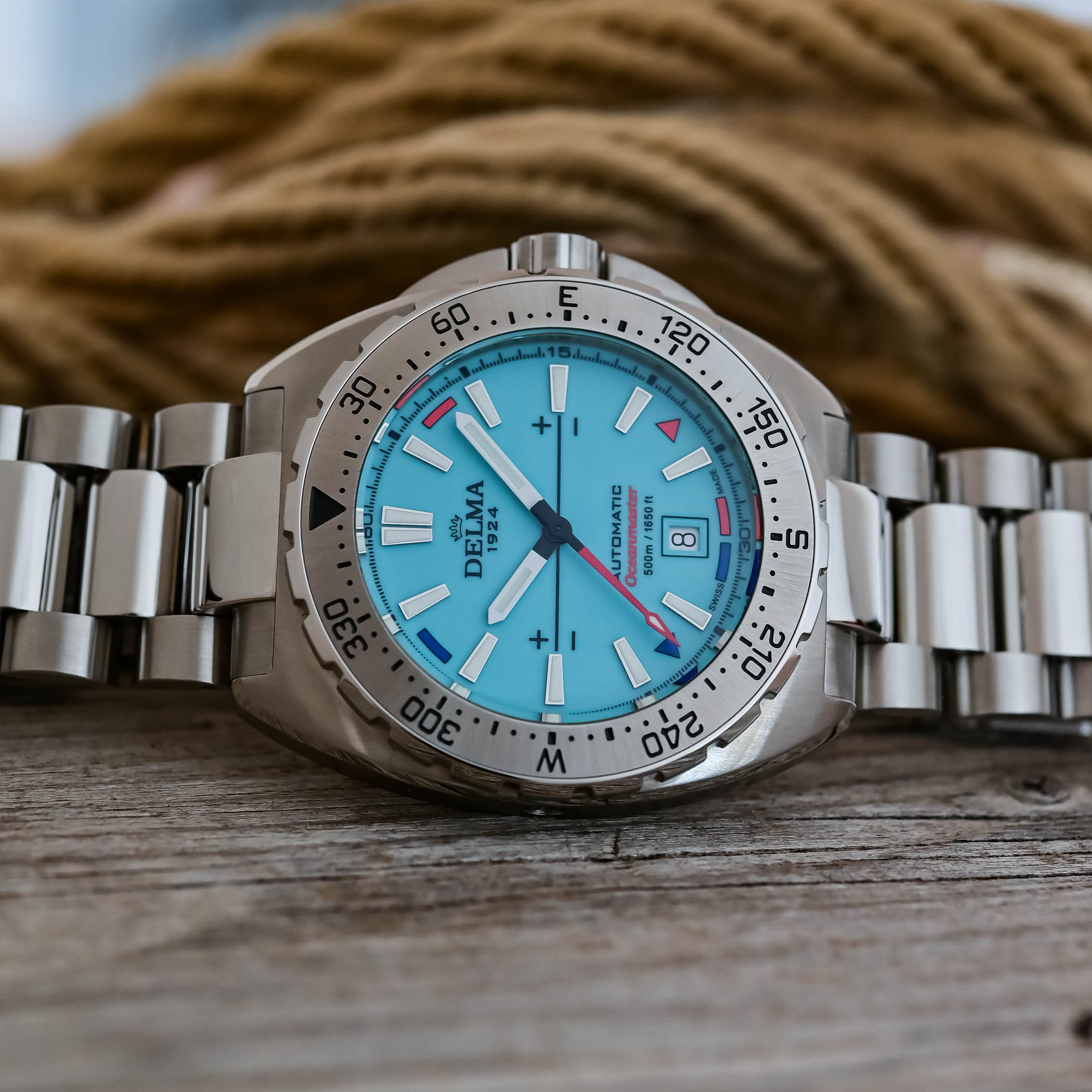 A nice surprise with such a depth rating is the presence of an exhibition back. Delma’s sapphire window is thick and well-sealed; the brand clearly wanted owners to see the movement while retaining the Oceanmaster’s “overbuilt” character. The whole thing feels like a watch designed to be knocked about on a deck, then rinsed and worn to a dinner onshore.