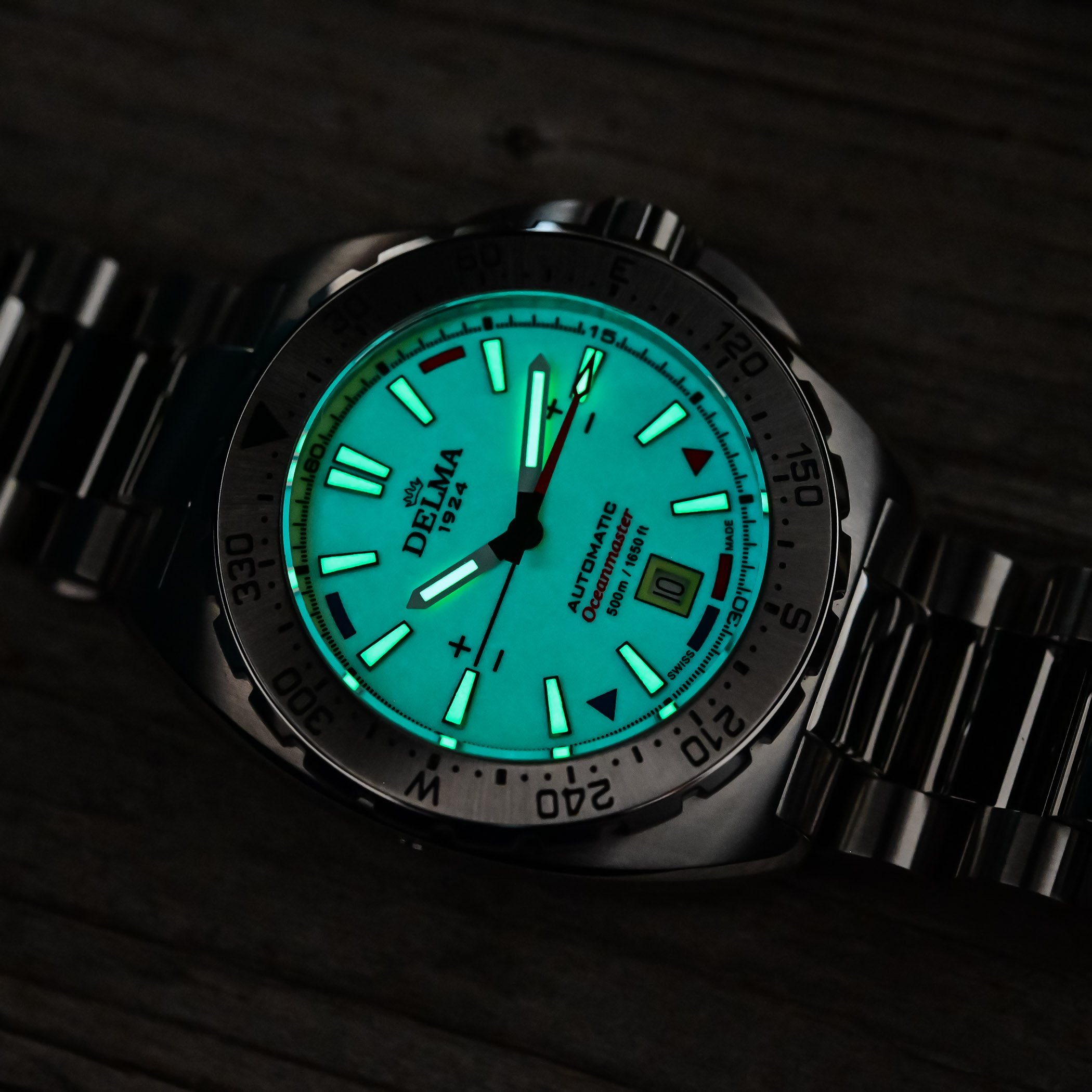 The Delma Oceanmaster Lume feels like a productionised version of the Oliver Heer Ocean Racing full-lume concept: same core utility, now in four colours, with better night legibility, and a display back that doesn’t compromise the 500m rating. If you sail at night, the luminous design makes immediate sense. If you don’t, you’re getting a distinctive, perhaps overbuilt 500m nautical tool with real personality and a sensible serviceable movement, precisely the kind of honest proposition Delma has traded on for a century.