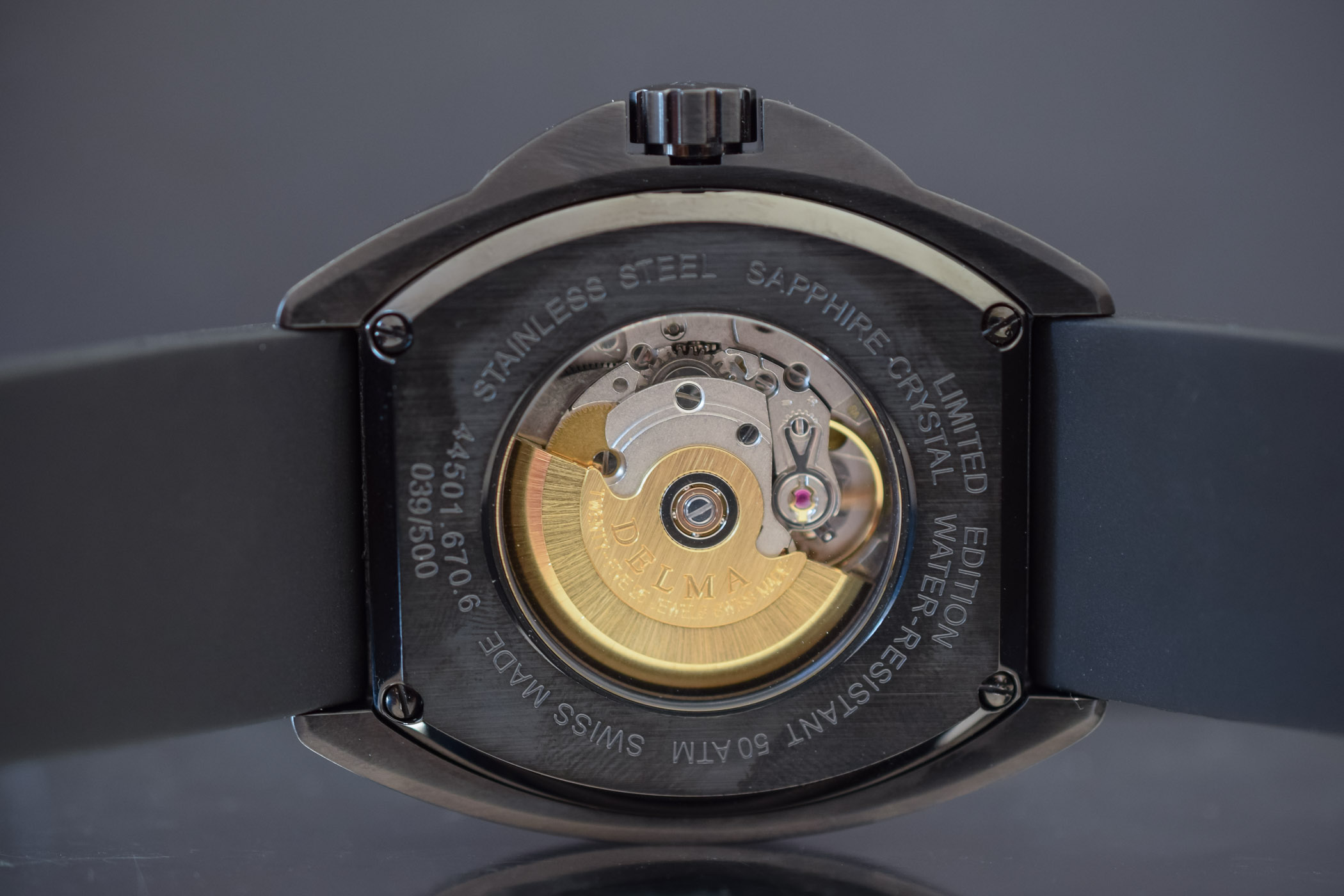 A modern revival of the model (although quite different in terms of design), the Shell Star is one of Delma’s most important collections. On the occasion of Baselworld 2018, the brand is releasing a DLC steel limited edition of the model, in a run of 500 pieces. Dubbed ‘Black Tag’, its name comes from free-diving and the tag divers grab off the bottom plate to prove the planned depth was reached.