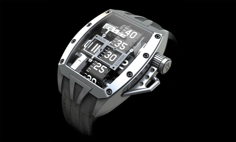 Possibly the best part of the redesigned Tread 2 is an actual chronograph incorporated into the movement. When pushing down on the crown you activate the chronograph, which will no doubt be a stunning visual treat. Seconds are counted on the minutes belt, minutes will be counted on the hours belt. A pusher placed inside the crown can be pushed to reset the Chronograph, and display the current time again.