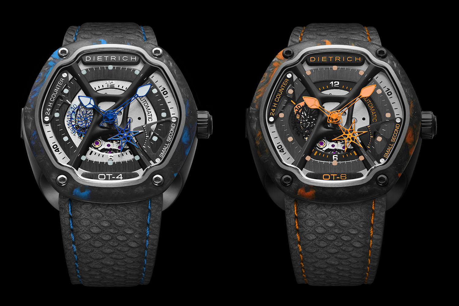 The carbon editions without colored incstuations are priced at 1,850 CHF (Dietrich O.Time-1 Carbon, Dietrich O.Time-2 Carbon, Dietrich O.Time-4 Carbon, Dietrich O.Time-6 Carbon) while the colored versions (Dietrich O.Time-2 Carbon Color, Dietrich O.Time-4 Carbon Color, Dietrich O.Time-6 Carbon Color) and the luminescent version (Dietrich O.Time-1 Carbon Luminescent) come for 1,950 CHF. Watches are explained here and available for order here.