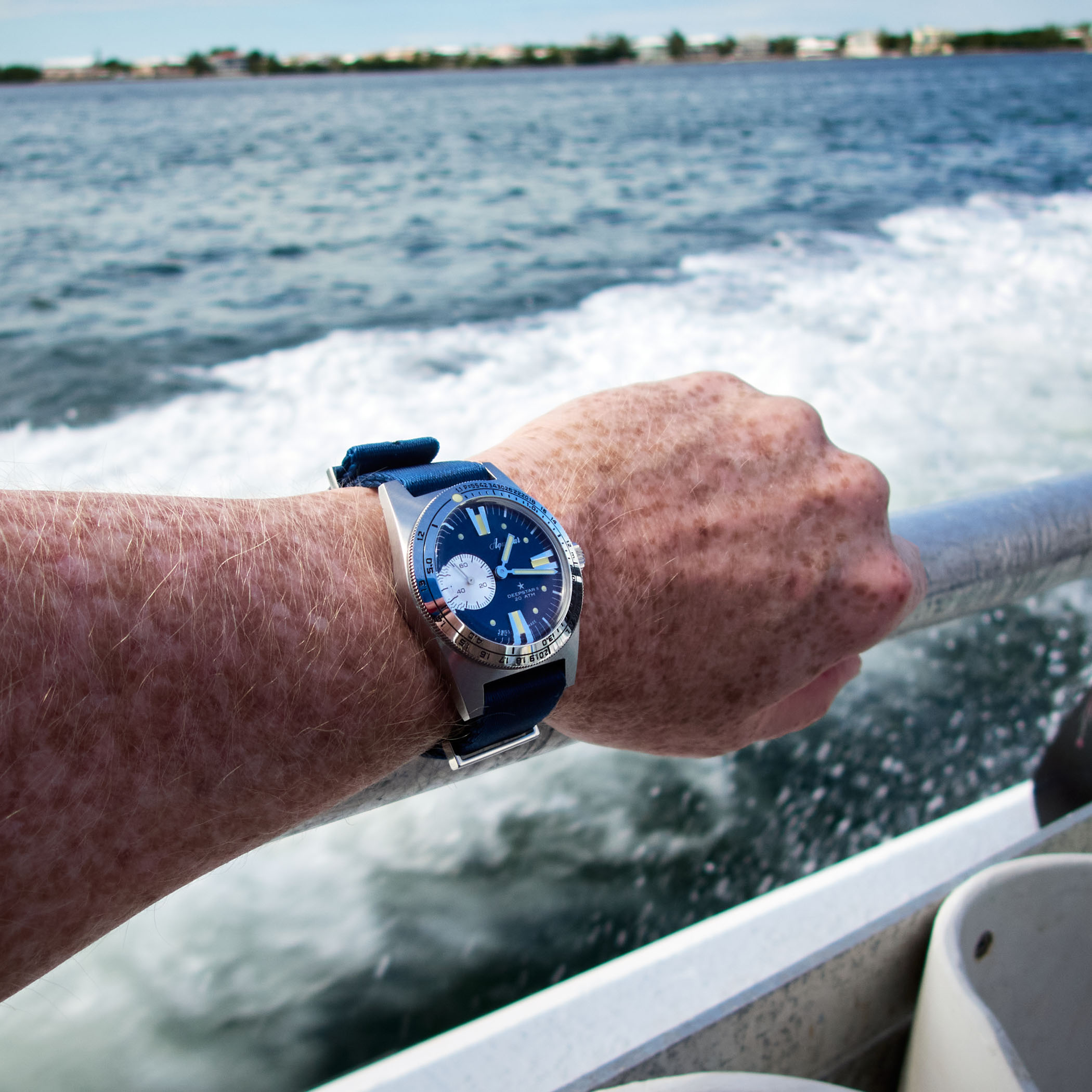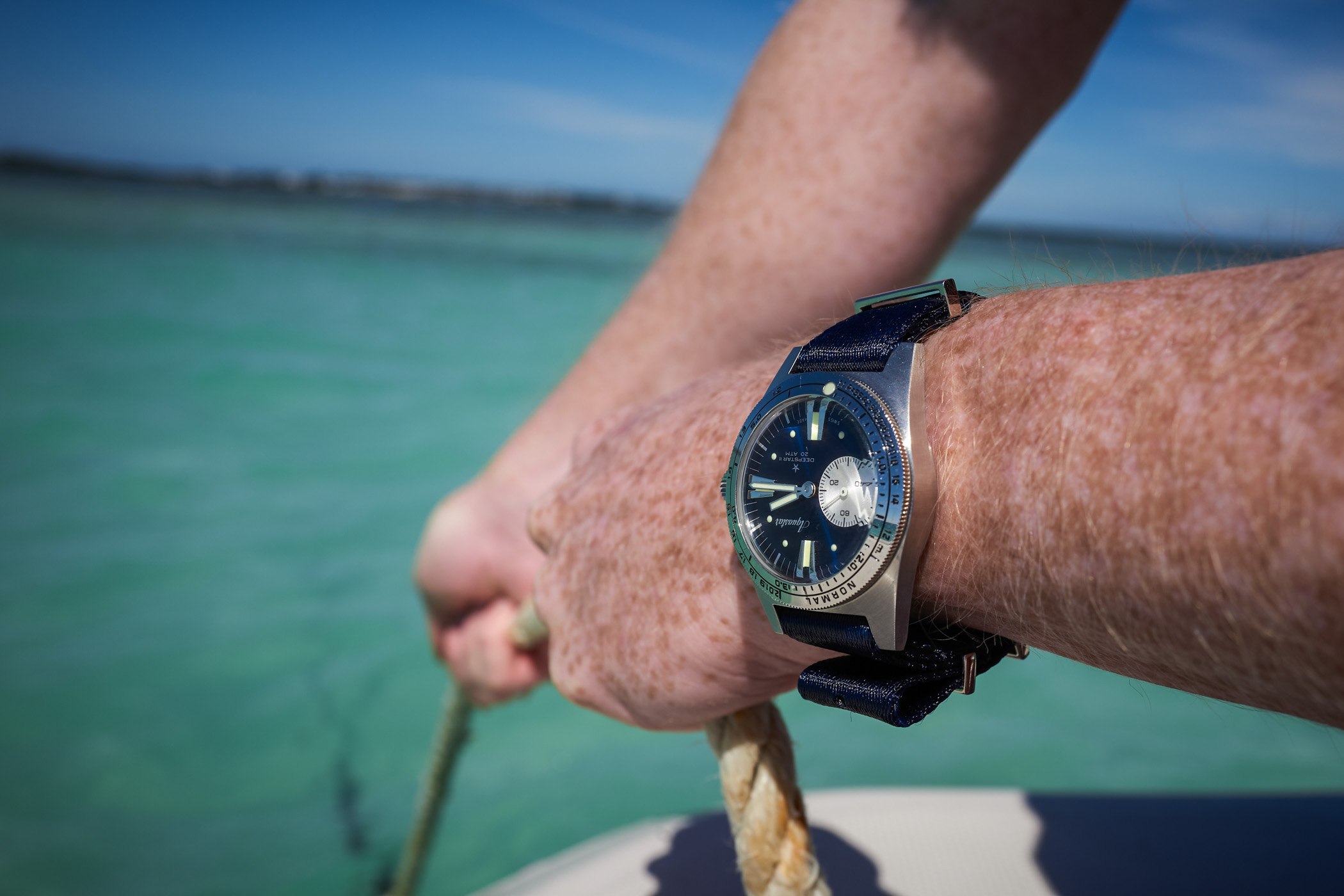 Steering a boat with the wind in your hair and the Deepstar II on your wrist, it may as well be 1962 again. You reach in your pocket to scrounge $0.15 for another litre of petrol, as you only have three more lobster traps to check before you can clock out and finally go see Dr. No at the drive-in. Getting a little carried away? Probably, but that is the enchantment that these tiny pieces of steel and brass can hold.