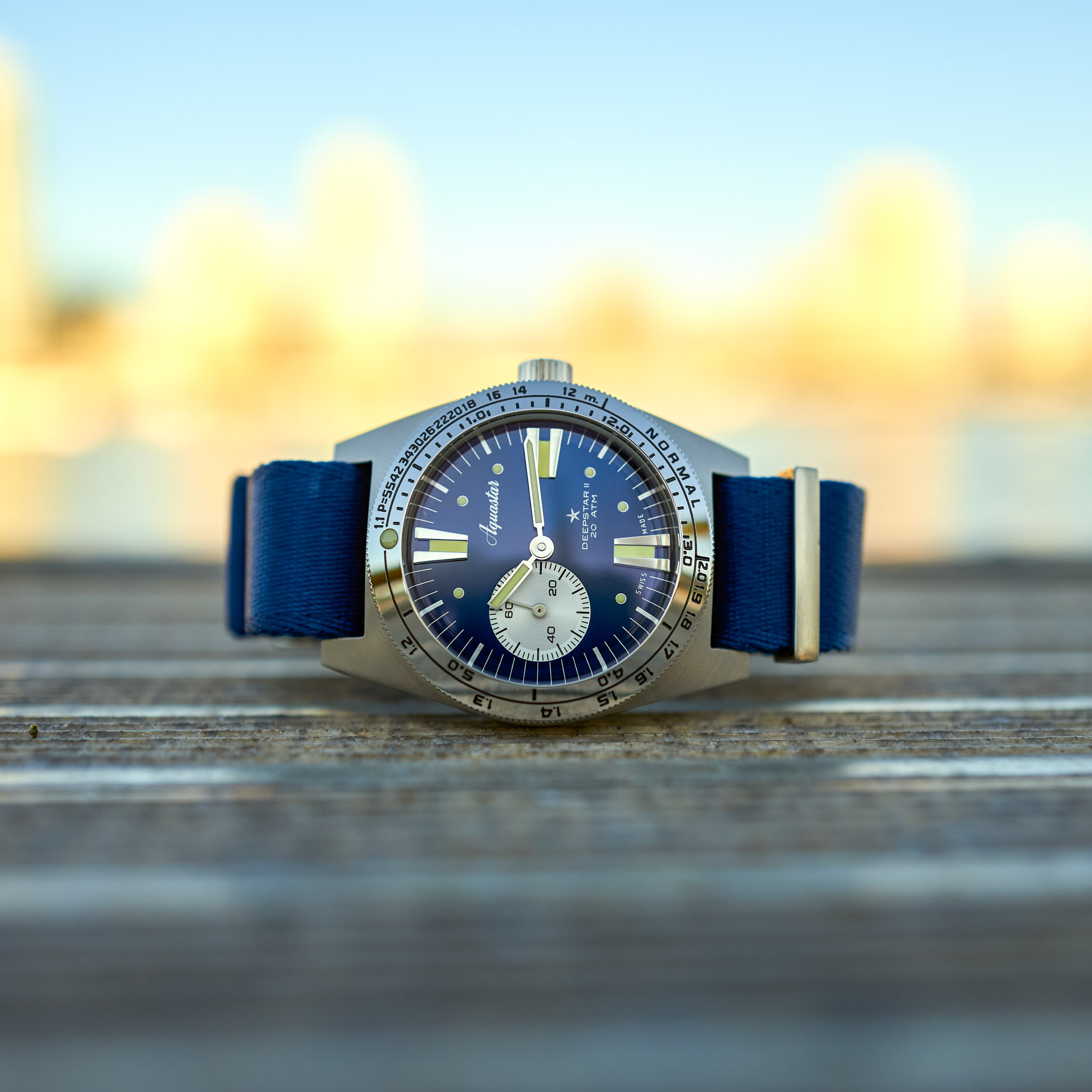 In practice, the Aquastar Deepstar II does everything you could want a dive watch to do and it does it with class and style. The NATO strap that mine came on is comfortable and plenty long to fit over any kind of exposure suit you might be wearing. And with a NATO strap you have the added bonus of two connections to the watch that would have to fail before you lose the watch forever. The dial is highly legible and the same goes for the bezel. I had concerns that the polished shininess of the bezel would be difficult to make out at depth, but quite the opposite is true. The engraved digits, while a little on the small side, are quite contrasted from the bezel itself and very easy to read. As for the 37mm size, it is just as perfect underwater as it is on shore. It’s almost like our diving forefathers 60 years ago knew what they were doing. If it ain’t broke…