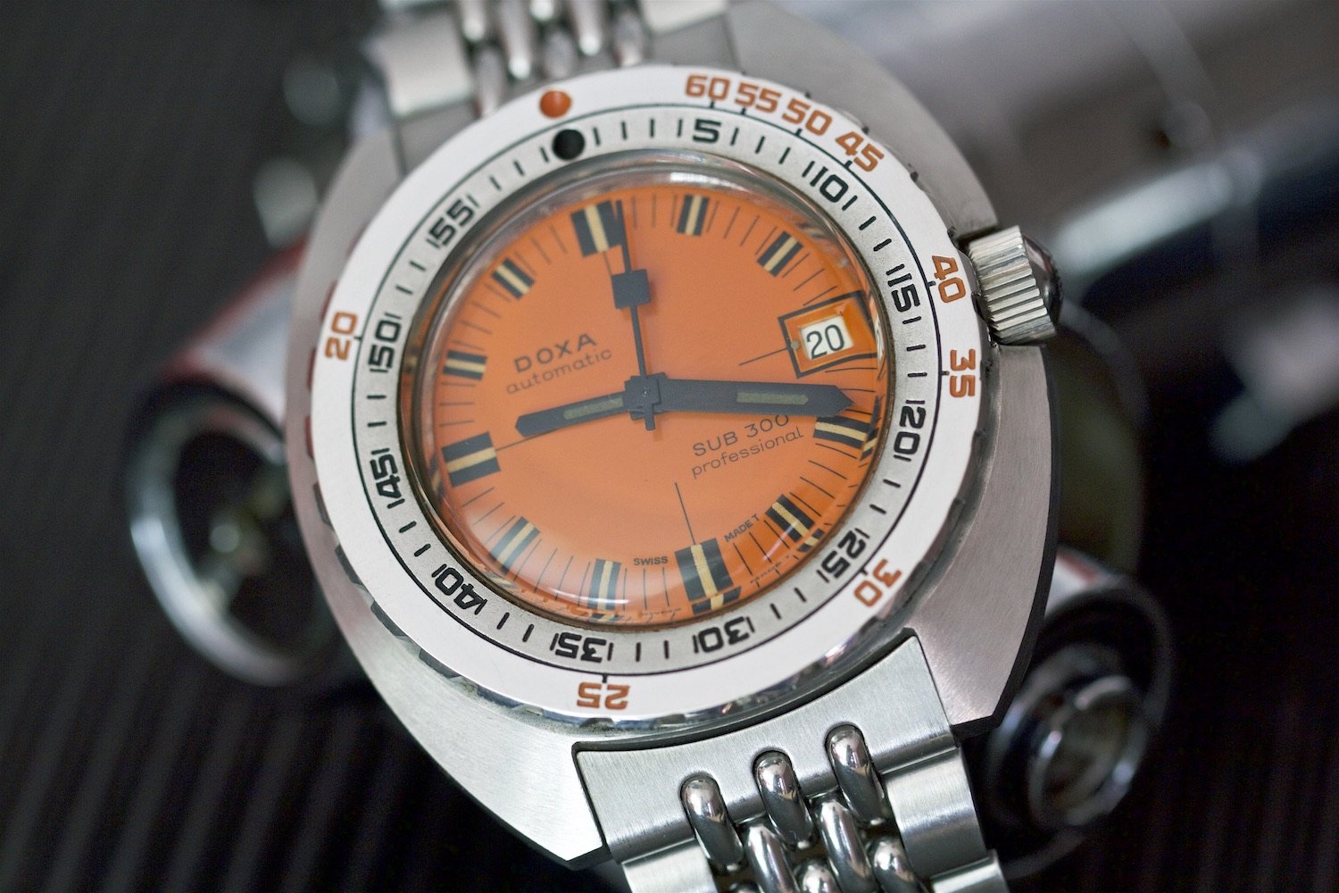 By the 1960s, DOXA had grown into one of the larger Swiss watch manufacturers, with over 150 employees. With the growing mainstream popularity of scuba diving, DOXA decided that it wanted to produce a dive watch for the everyday diver, an affordable alternative to the Rolexes and Blancpains used by professional and military divers of the day. A dive watch for the proletariat, if you will. Putting together a research team to develop the watch in 1964, rigorous testing ensued. What they settled on was a large stainless steel case to enhance reliability and water resistance, a bright orange dial, which had proven to be the most legible in their underwater testing, and the now-iconic rotating bezel with no-decompression dive table printed on it. And just like that, a star was born.