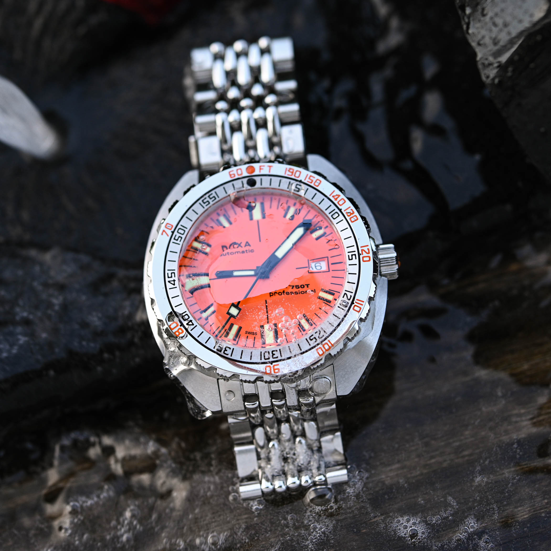 Since 1967, the Doxa SUB series has been a benchmark in underwater timekeeping, bringing the cushion-shaped case, patented no-decompression bezel and high-contrast dials to professional and recreational divers alike. In 2002, the brand introduced the SUB 750T, a bolder, oversized companion built for extreme depths. For its 20th anniversary, Doxa paid tribute to one of its most famous fans with the SUB 750T Clive Cussler Edition, a limited series that unveiled a redesigned, thinner case. That design now returns in full force, as Doxa introduces the regular-production SUB 750T, available in 16 references across the brand’s entire colour spectrum.
