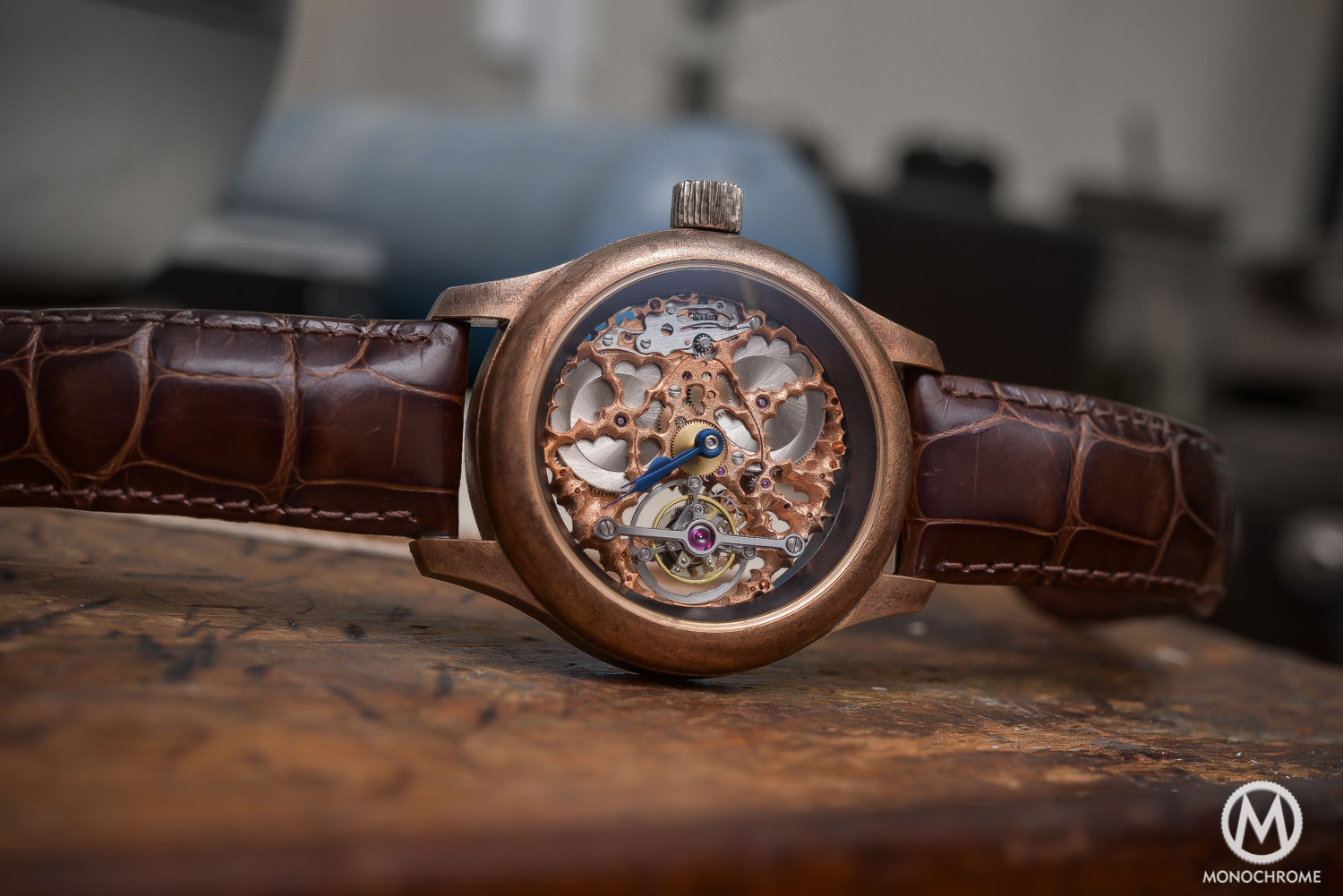 Before you wil say, “that it is just another open-worked watch”, please read this (a quote from our editor in chief Frank Geelen from a previous article): “The moniker “skeleton watches” is often used for so-called open-worked watches, as well as for true skeleton watches. Before we go any further, let me briefly explain the difference. In short, open-worked watches feature an entire movement, or at least some movement parts, that are partially open. These movement parts are milled, usually by CNC machine, and might ultimately be finished by hand, might… A true skeleton watch starts its life with a normal non-open-worked movement that is skeletonized by the skillful hand of a master-engraver.”