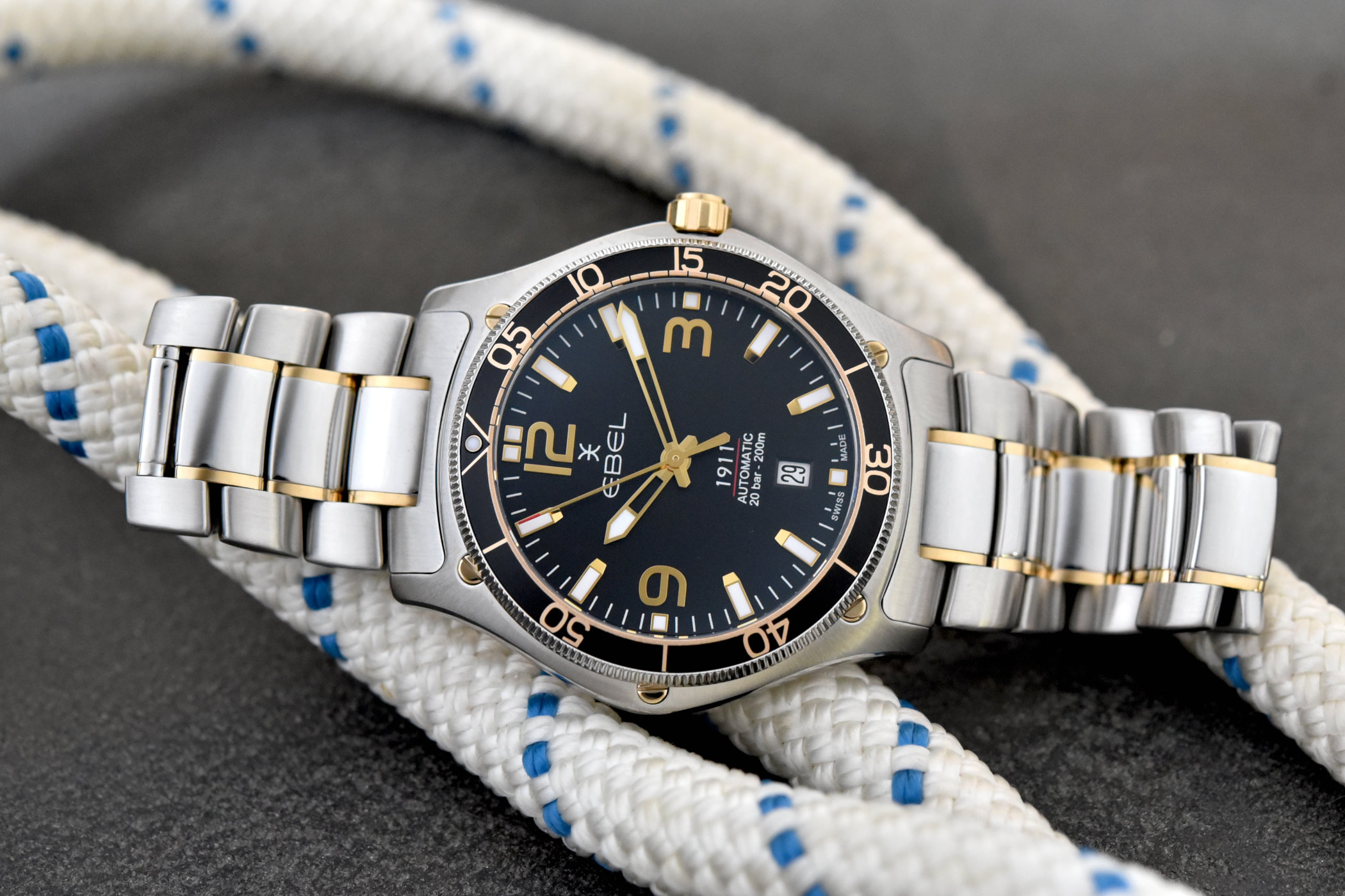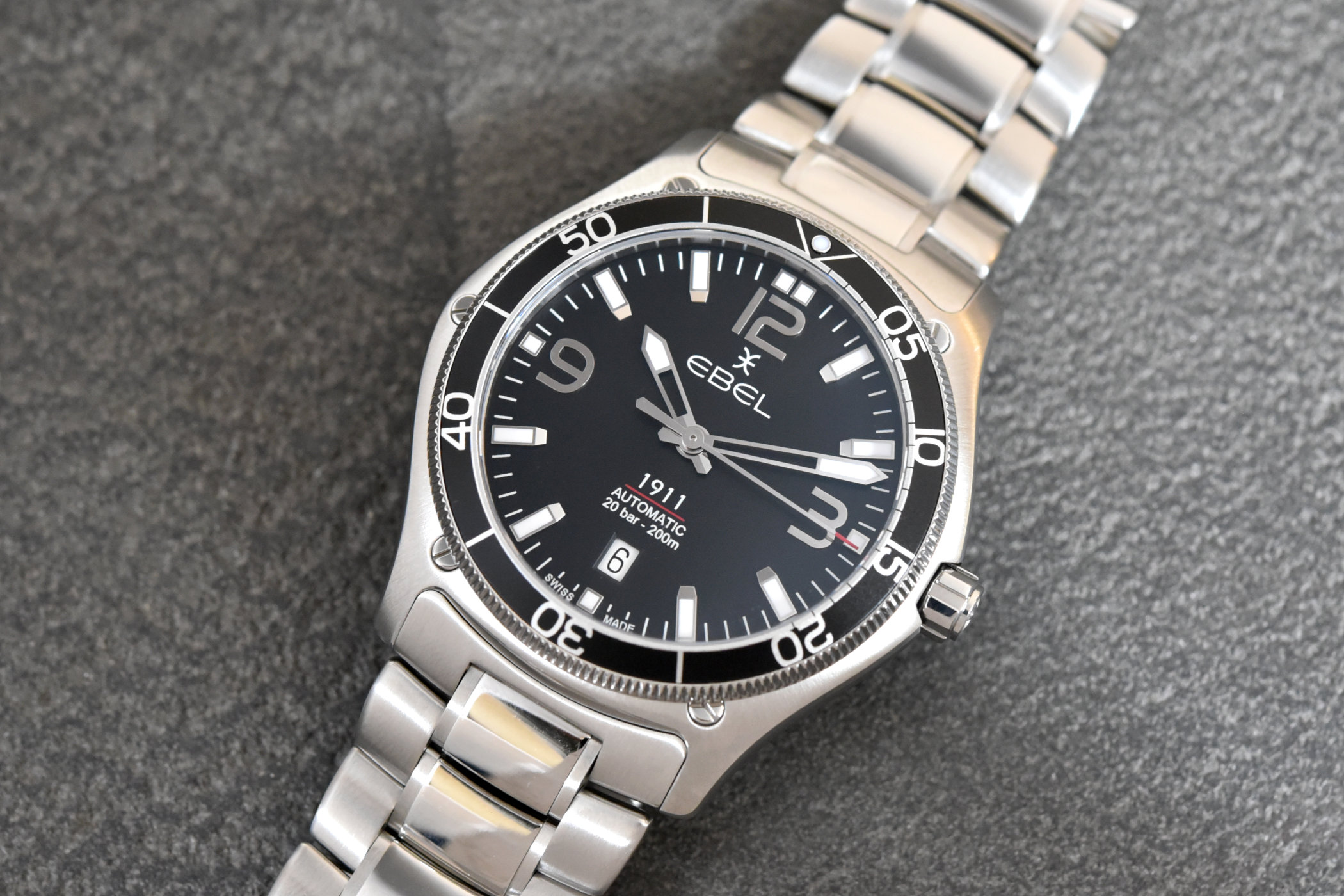 Coming from someone who has no understanding of the brand, other than they used to make chronographs with the El Primero movement, I quite like this unusual diver look. It still looks like a Ebel to me (with their distinctly recognizable case shape). Looks alone I think if they replaced the 12 with the Ebel logo (like they do in their Discovery models), dropped the “1911” and the red underline, AND had a panorama date (to balance against the giant 3 6 12 indices), I would really pull the trigger without hesitation. Again, that would be me judging solely on the design and not tying their history to it (would love to learn more if anyone wishes to share).