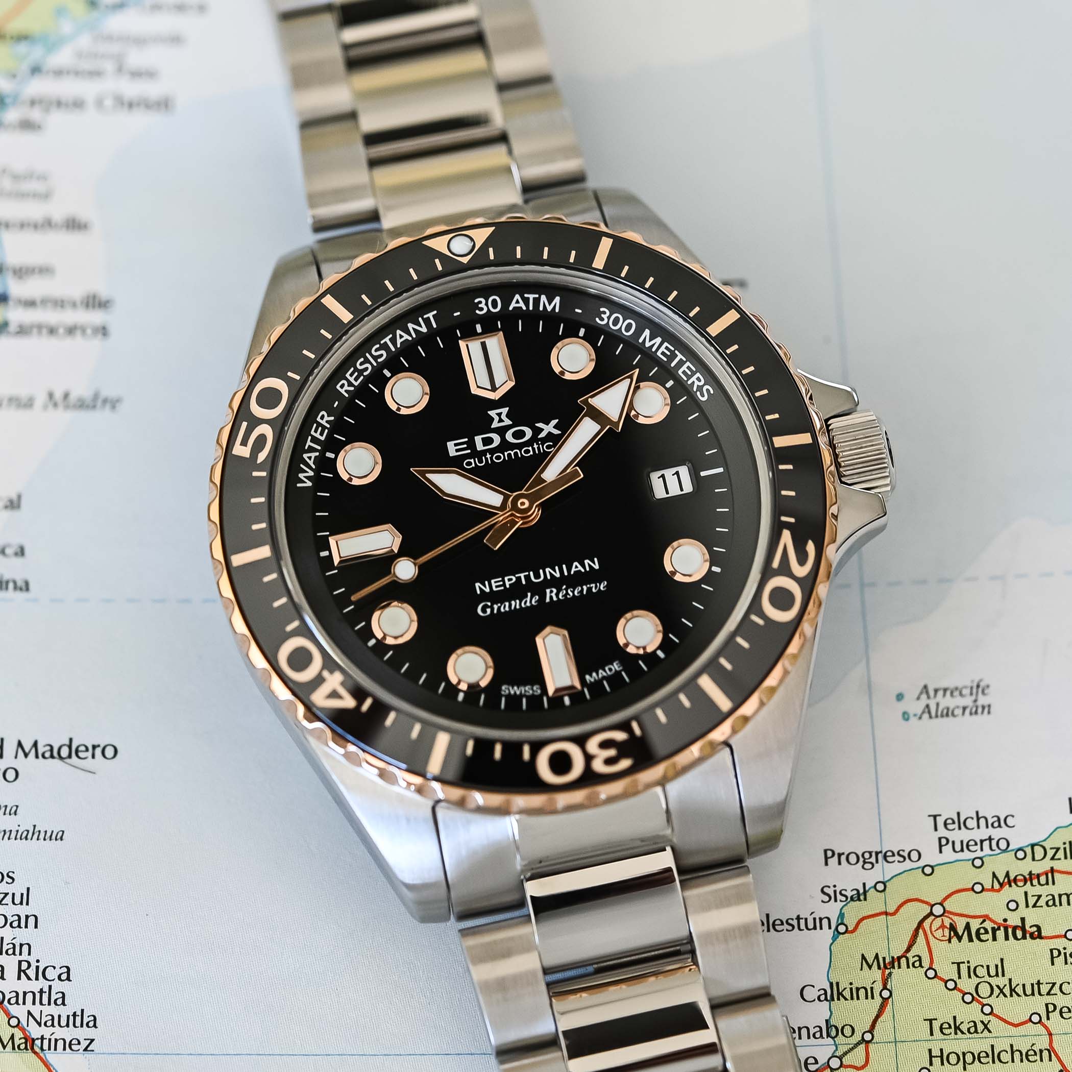 The name Neptunian should be familiar to dive watch fans and has recently been used by Edox for a genuinely competent instrument, the 1000m water-resistant SkyDiver Neptunian. Following the same design codes but now offered in a more wrist-friendly case, the new Edox Neptunian Grande Réserve combines robustness with daily practicality and a powerful new movement.