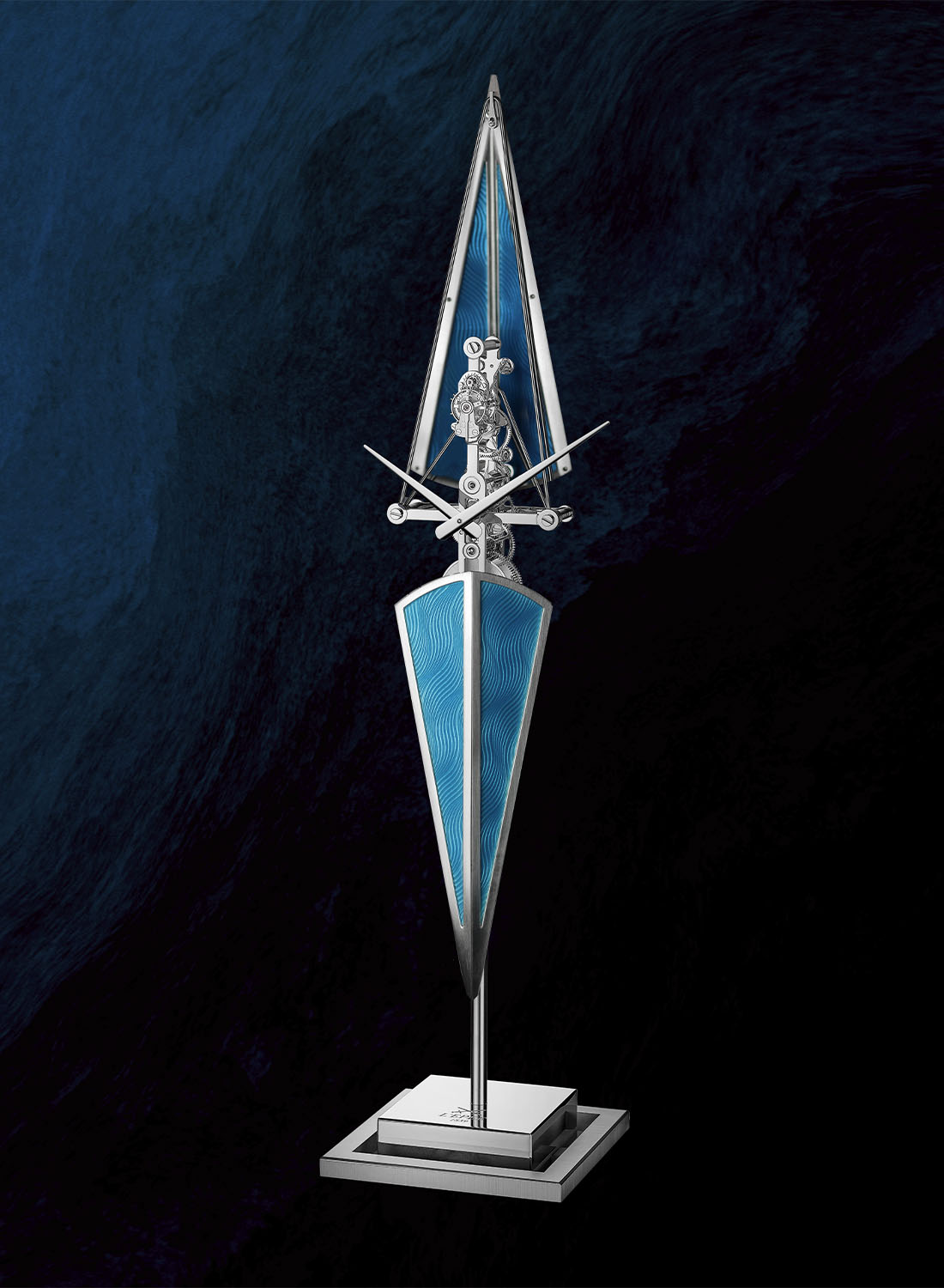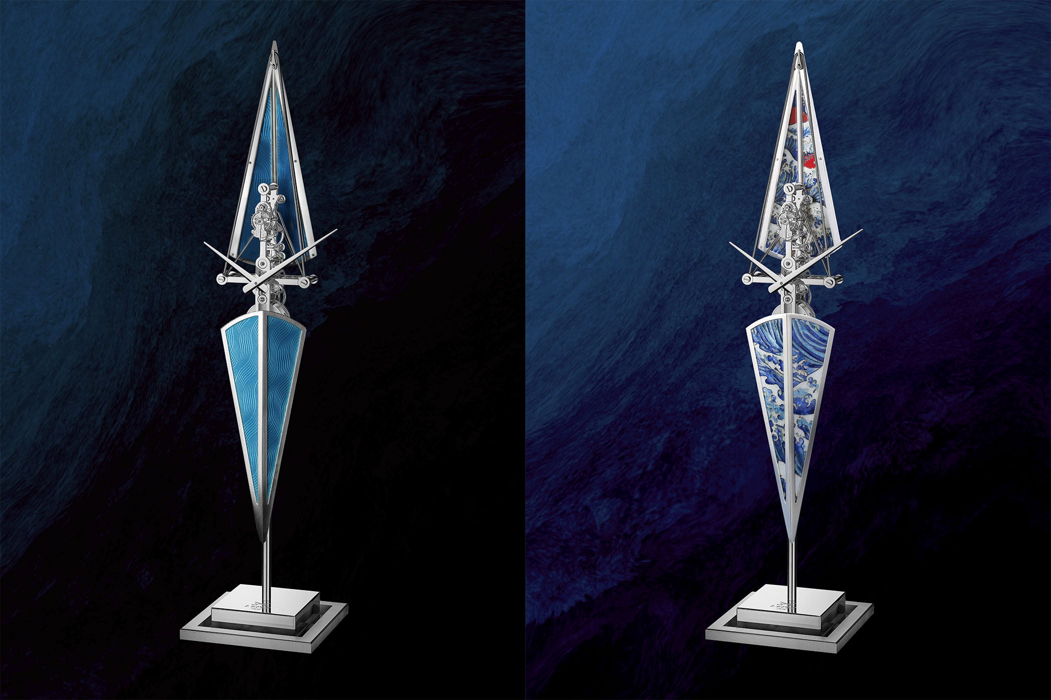 For over 180 years, L’Epée 1839 has been one of the greatest specialists in high-end mechanical clocks, from traditional carriage timepieces to captivating, bold creations like the 1520-component Albatross and other time-telling objects developed in cooperation with MB&F, cars and aeroplanes for Tiffany & Co., or an Imperial Hot Air Balloon for Louis Vuitton, to name a few. Following its recent acquisition by LVMH, L’Epée continues to make exceptional objects that unite design, mechanics, and artistry, while remaining devoted to the rare art of clockmaking. The new La Regatta Métiers d’Art is a fine expression of the brand’s approach and philosophy.