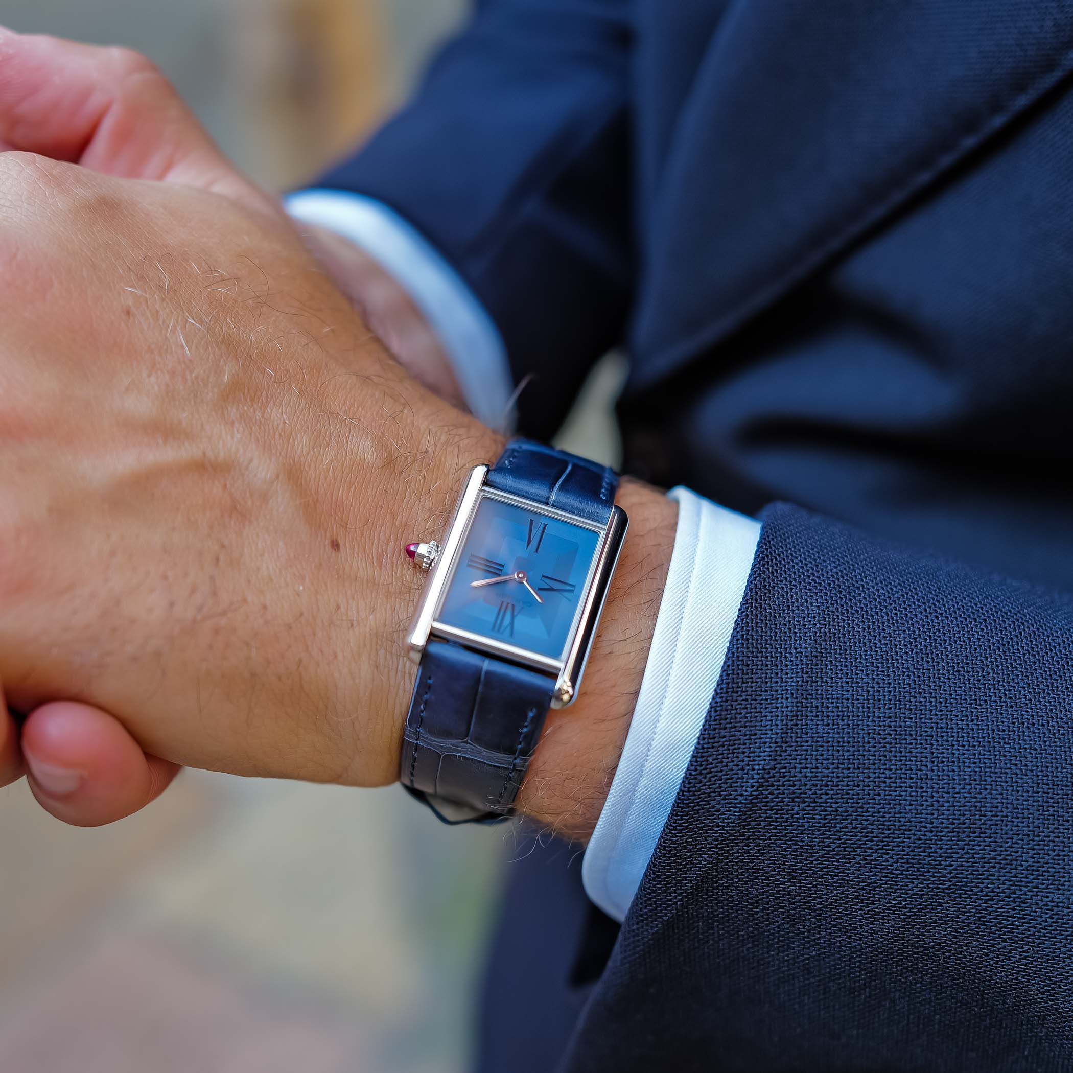 Worn on a semi-matte blue alligator strap, this Tank Louis Cartier Limited Edition (ref. CRWGTA0121) will be made in 170 pieces only. It will be priced at EUR 13,800 (excl. taxes), which makes it relatively accessible and with a reasonable premium compared to a gold version (which isn’t always the case…) For more details, please visit cartier.com.