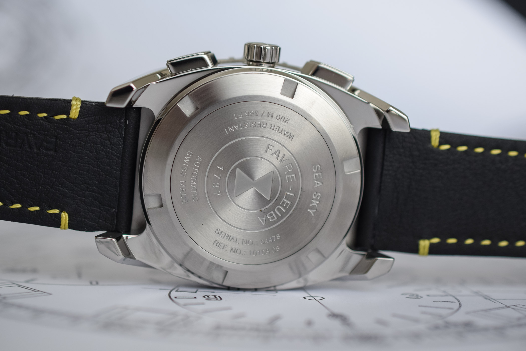 Powering the Raider Sea Sky is the ubiquitous Valjoux chronograph movement. Favre-Leuba made the right choice by using the 7753 and its more balanced 3-6-9 display. The movement is robust, easily serviceable and fits the toolish nature of this watch.