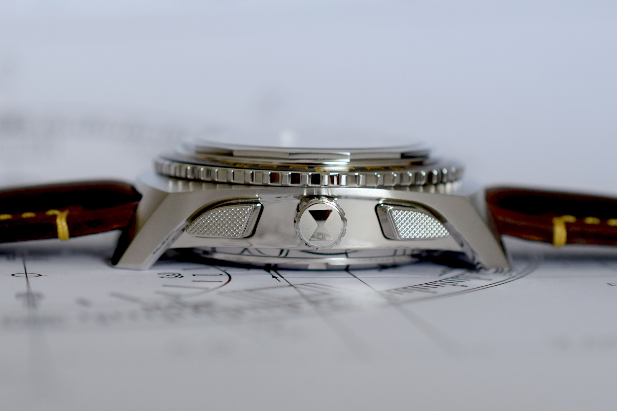 Nonetheless, the shape is interesting and unique, with nicely designed casebands that visually make the watch feels thinner than it really is. Several other details should be noted, such as the well-integrated and functional chronograph pushers as well as the aligned caseback – a nice detail, as the engravings are always in the right direction.