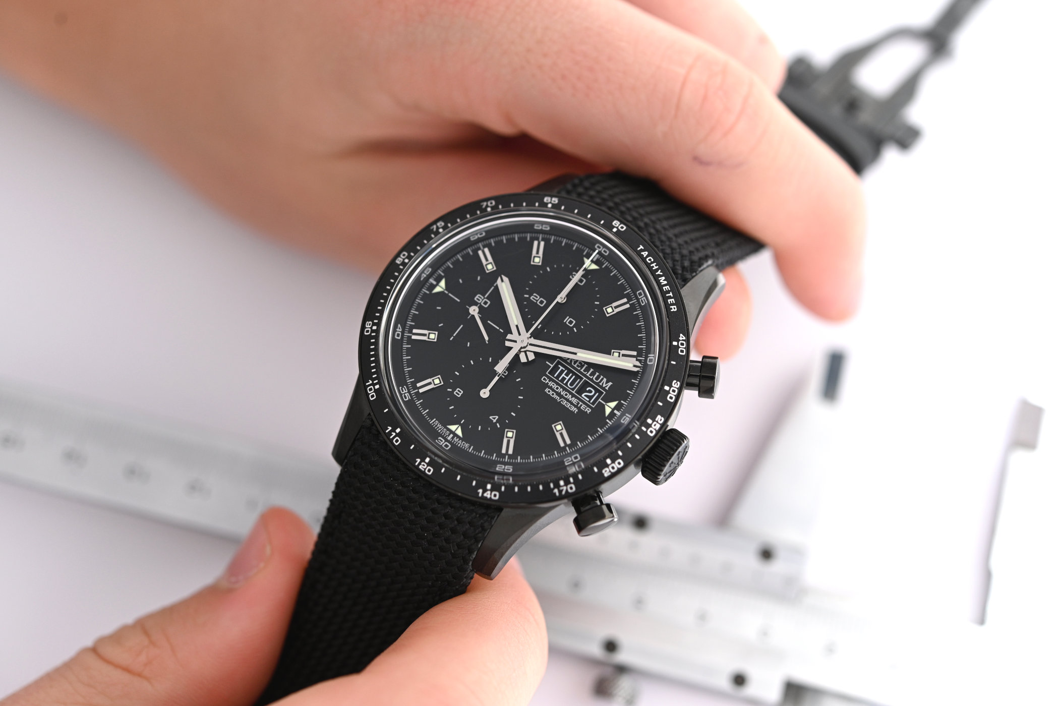An all-black version of Brellum's compelling Panda-style chronograph.