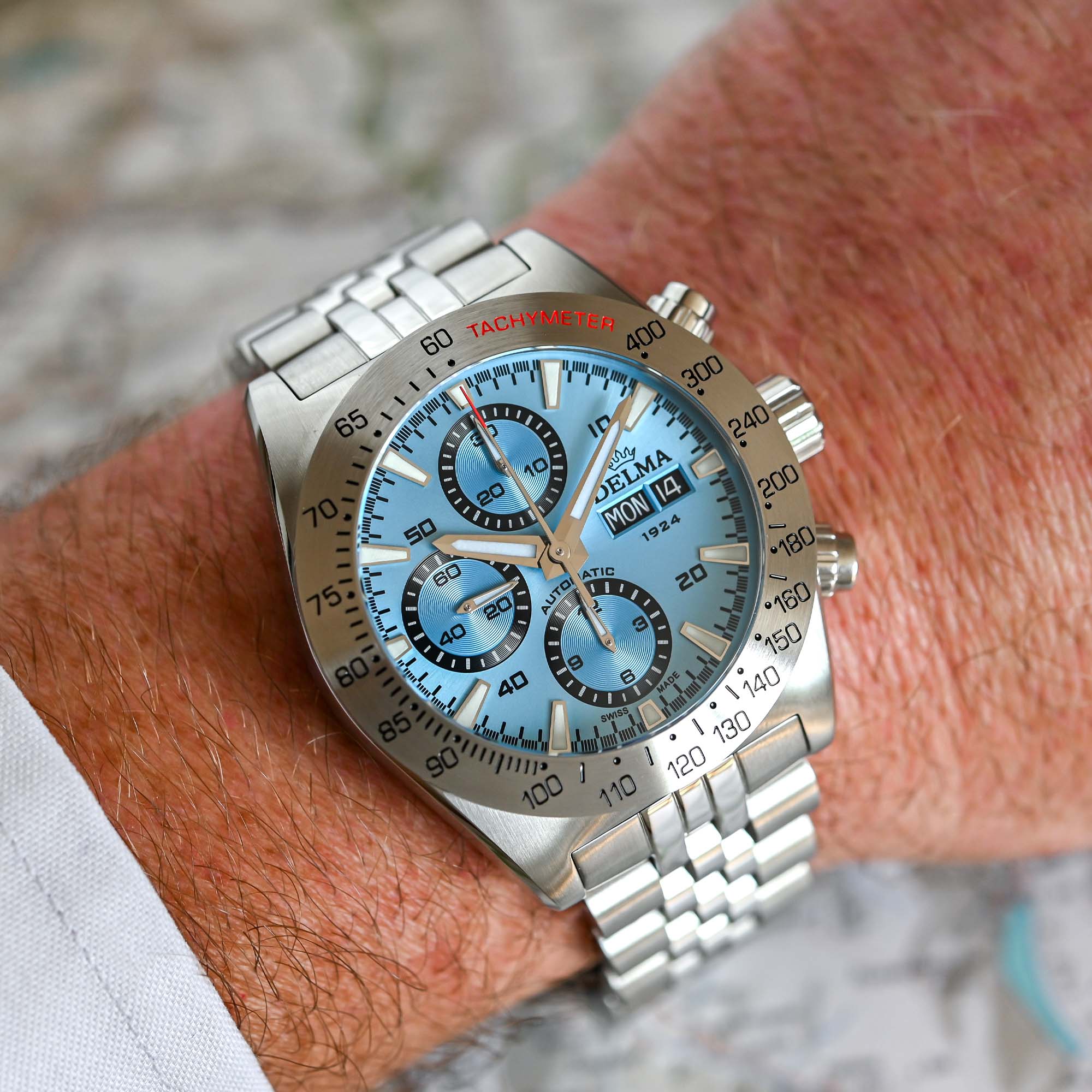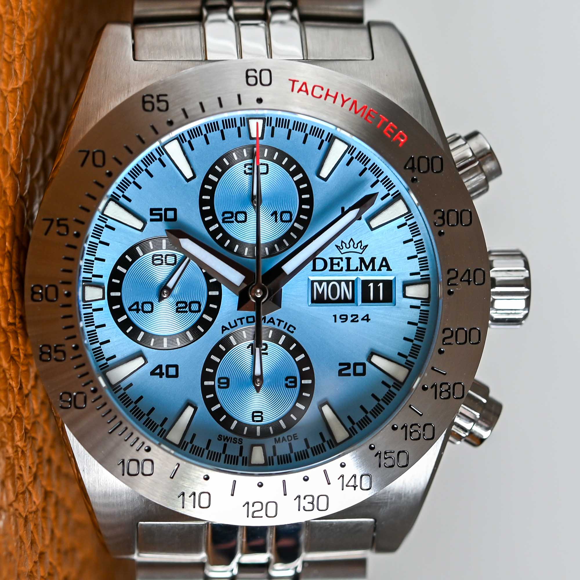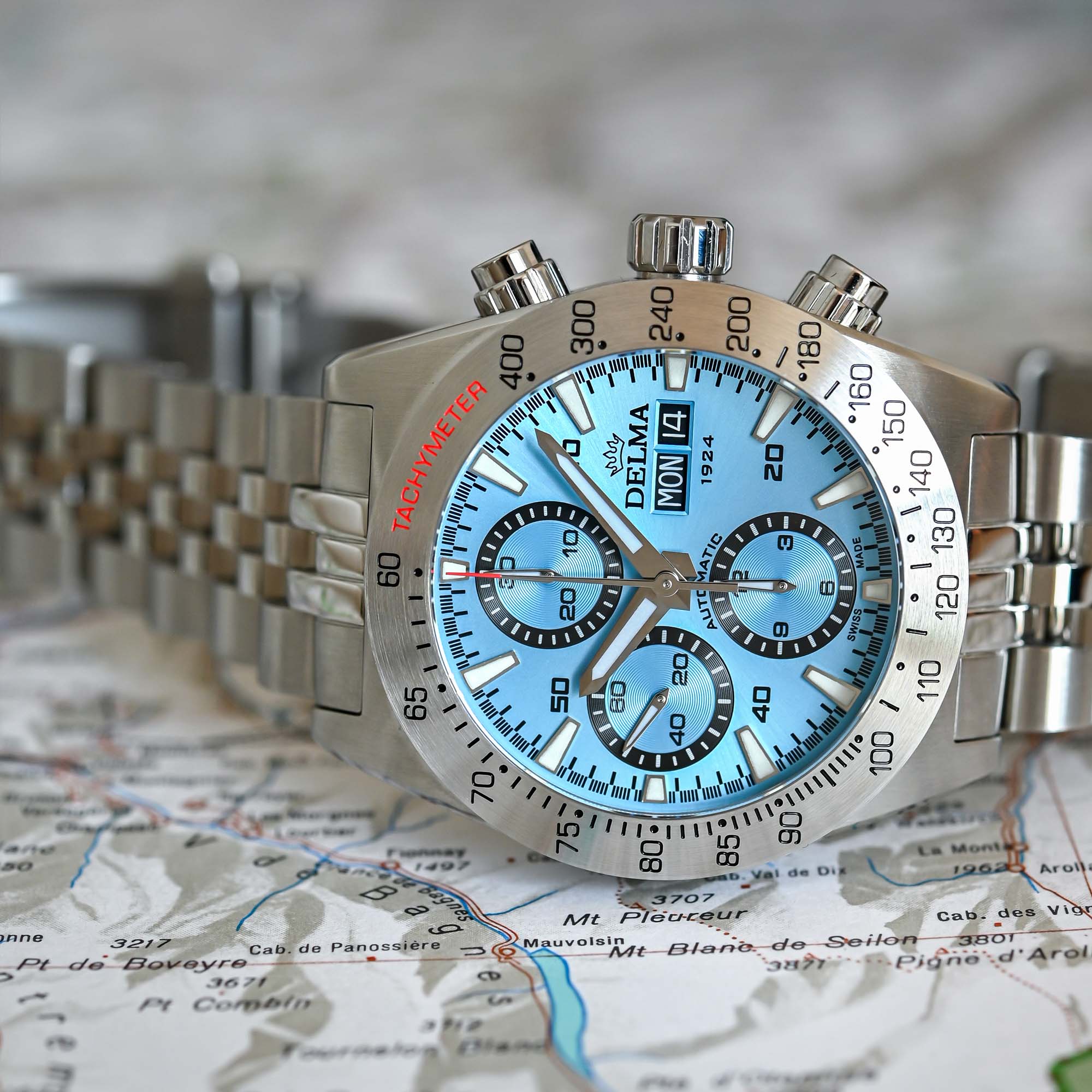With 100 years of watchmaking under its belt, Delma has quite a rich history. To honour this momentous occasion, Delma has released a fresh ice-blue limited edition of its stout Montego. This automatic chronograph is known for its robustness, fitted with a very reliable automatic chronograph movement and a bold and powerful look. It ties in nicely with the brand’s history, as it has been making chronographs since the mid-1940s. Let’s take a closer look at this fun and well-equipped Delma Montego Chronograph Automatic 100 Year Limited Edition.