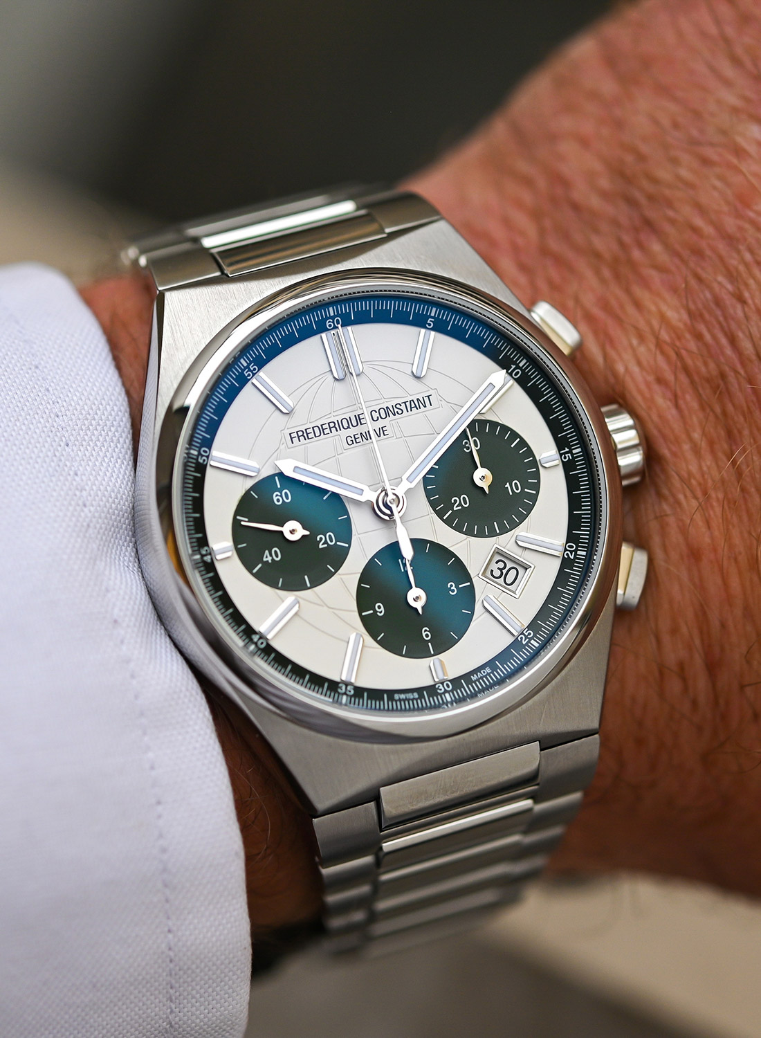 The Frederique Constant Highlife collection launched in 1999 with an interchangeable, integrated strap/bracelet at an affordable price, making the desirable “luxury Swiss sports watch” accessible to many. The collection ultimately went dormant but was relaunched in 2020 to great fanfare with musician, producer and brand ambassador The Avener. In 2022, the brand introduced the Highlife Chronograph with a panda edition, bringing a more contemporary aesthetic to one of the three new chronographs. Fast forward two years and we have two updated Highlife chronographs with a panda(ish) style, one limited and one standard, that bring welcomed aesthetic tweaks to keep the collection fresh.